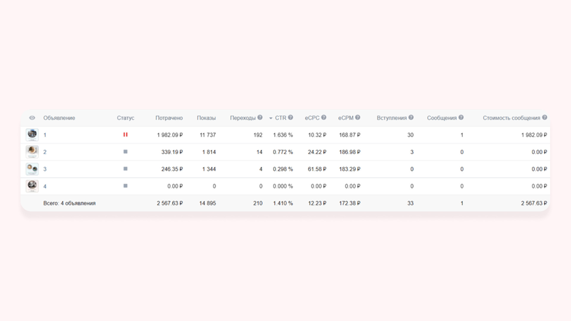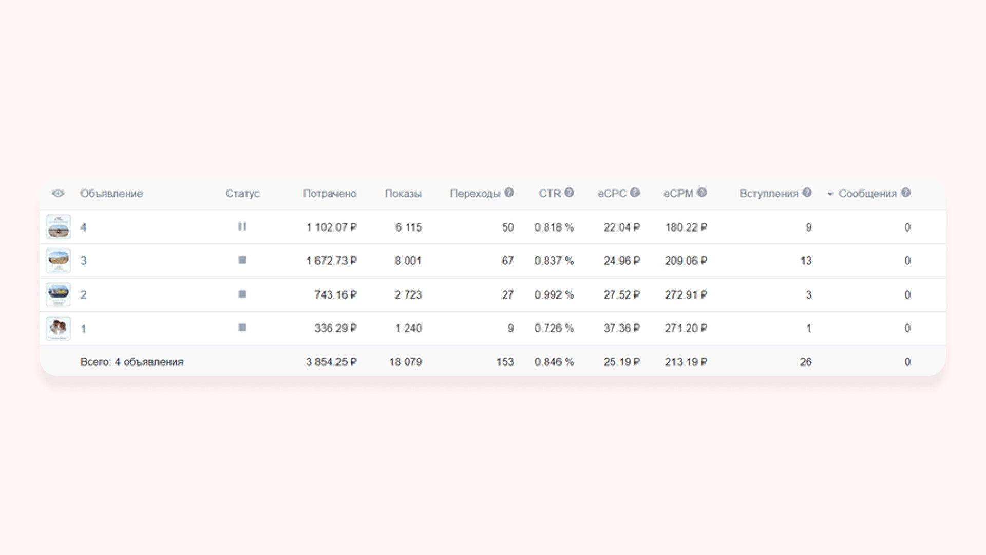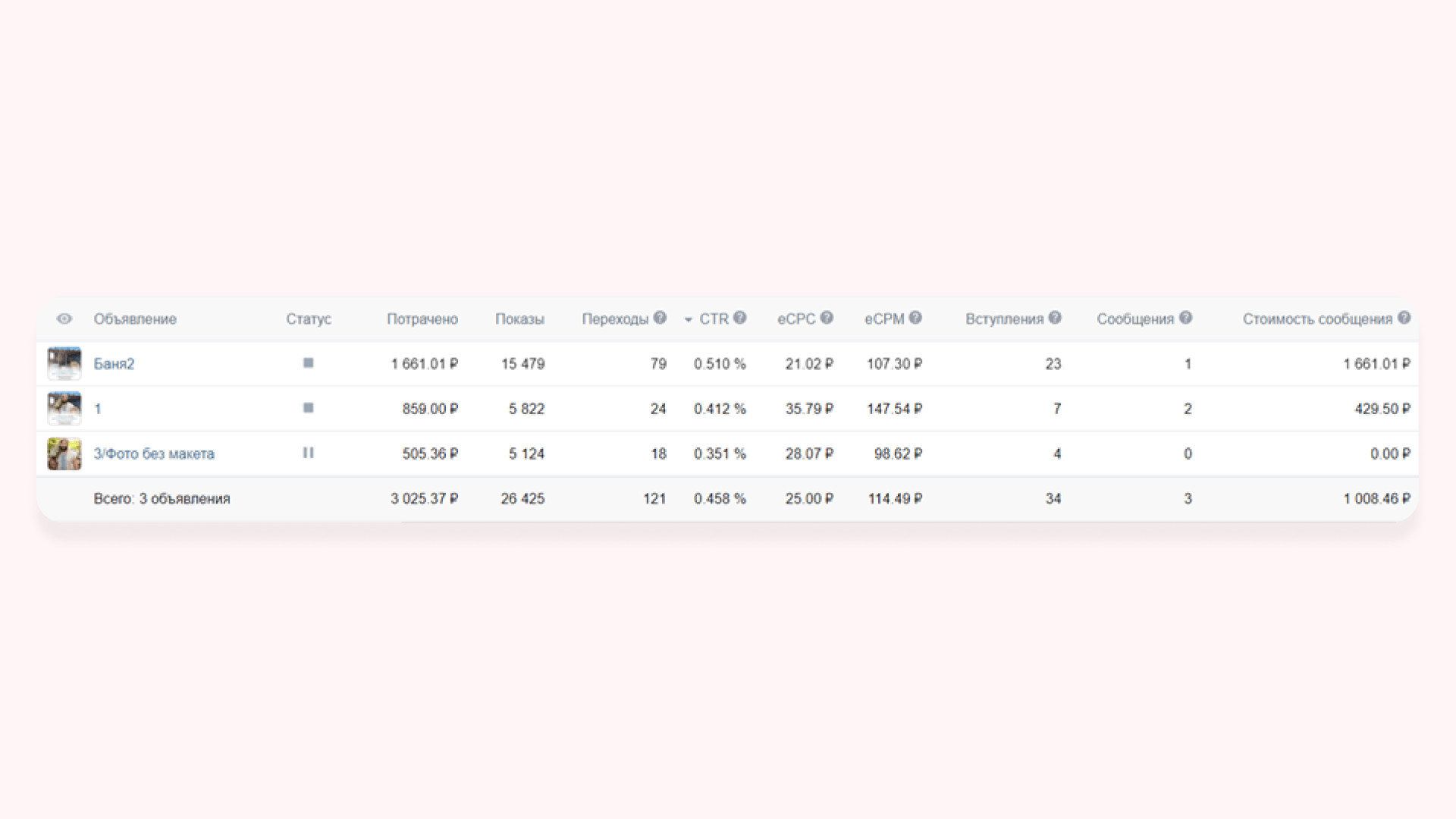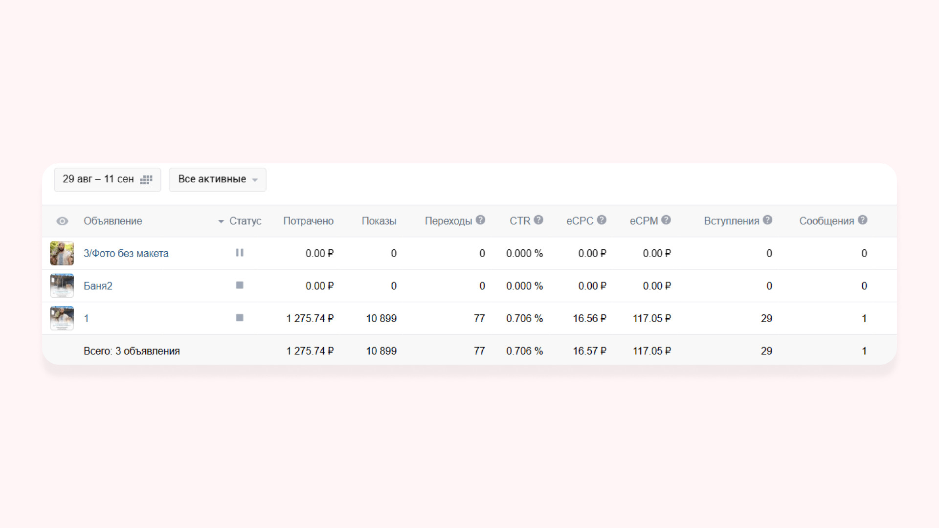 В работе использовали три формата рекламных объявлений: