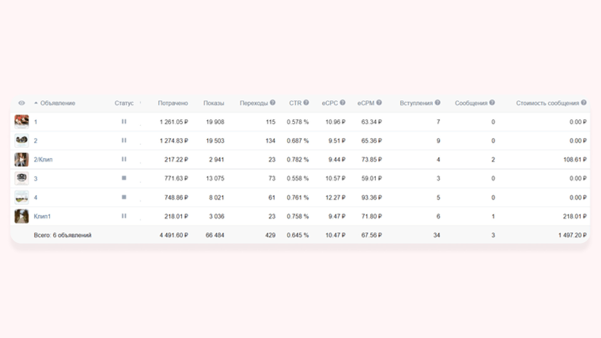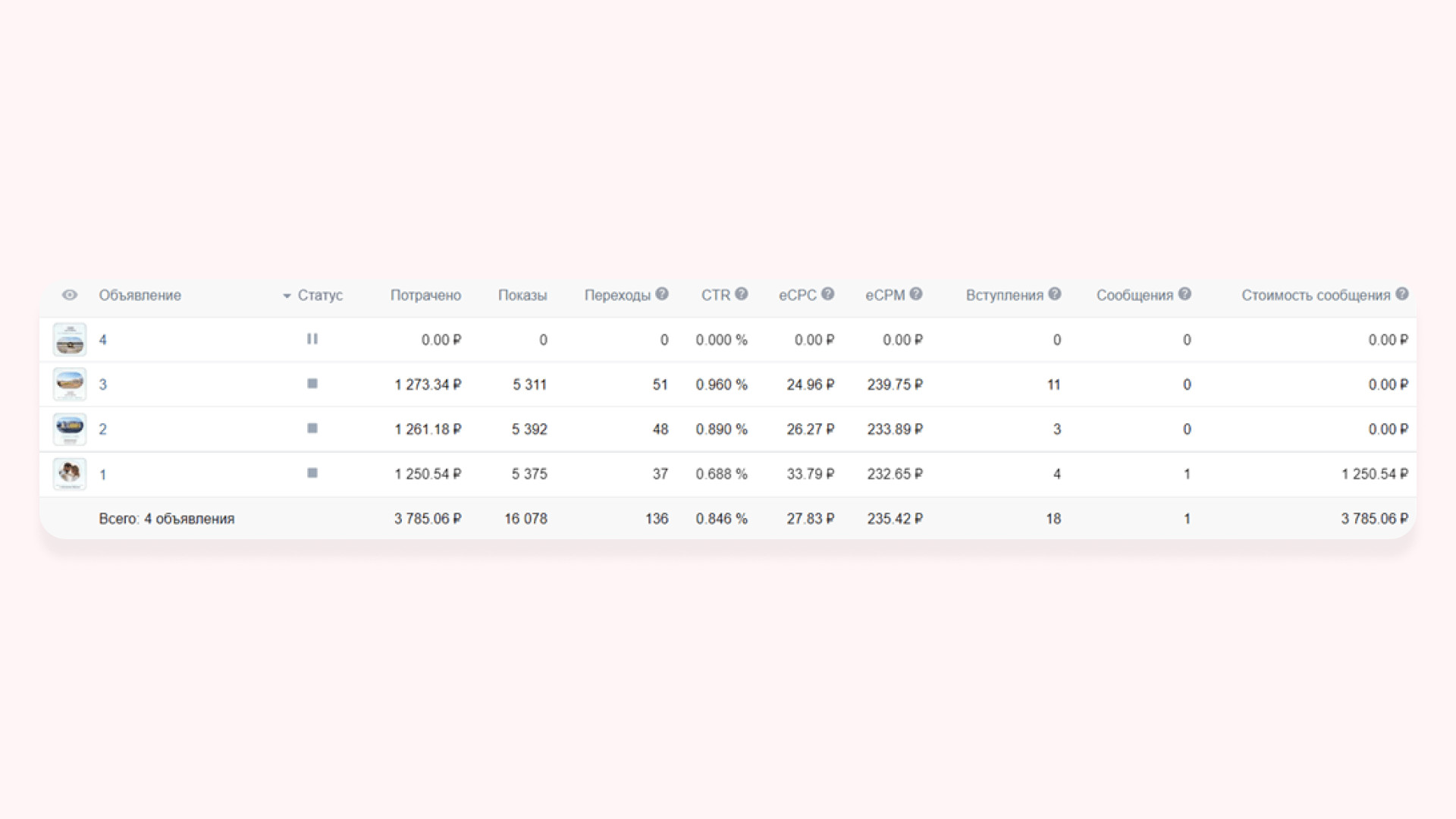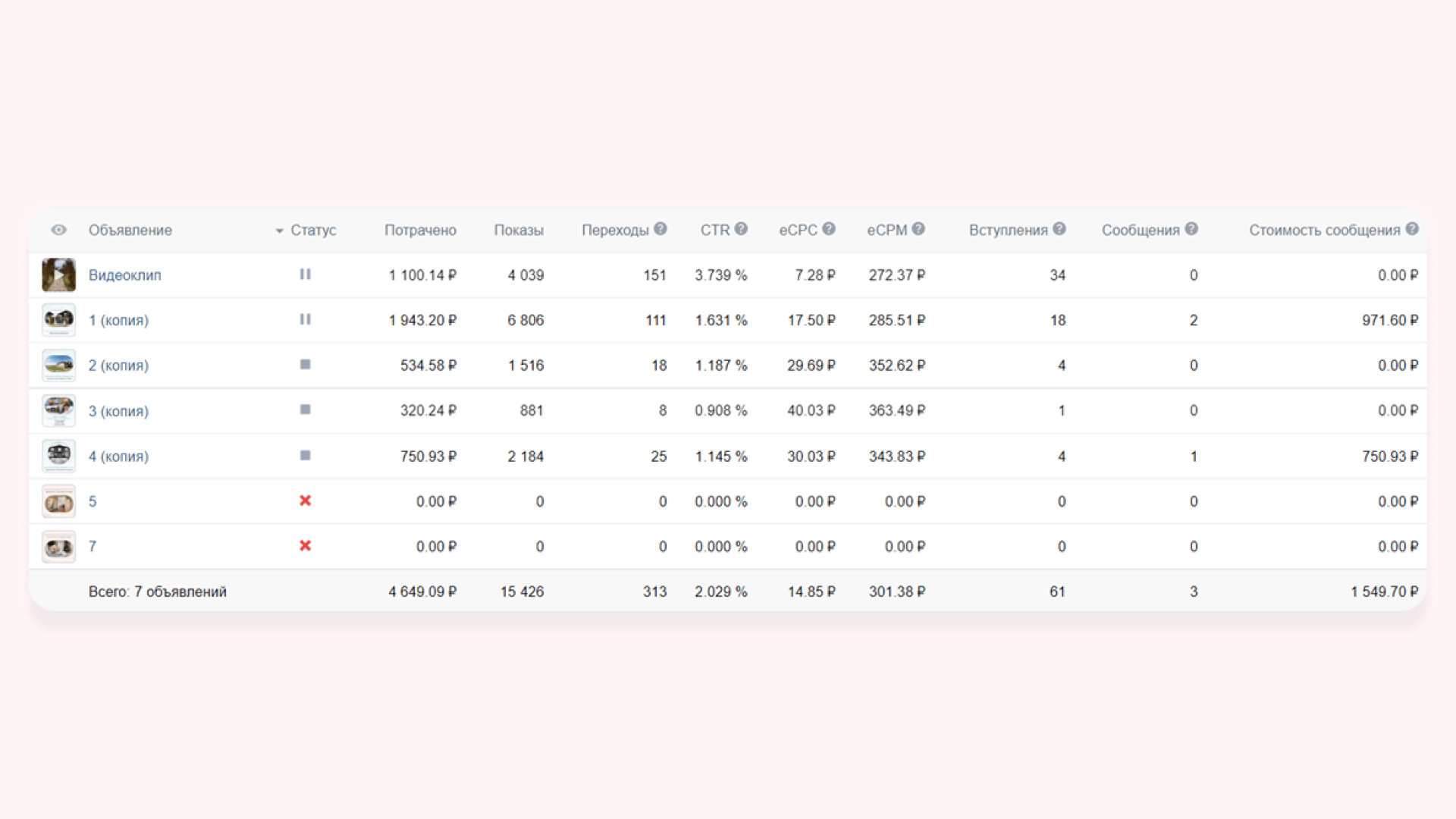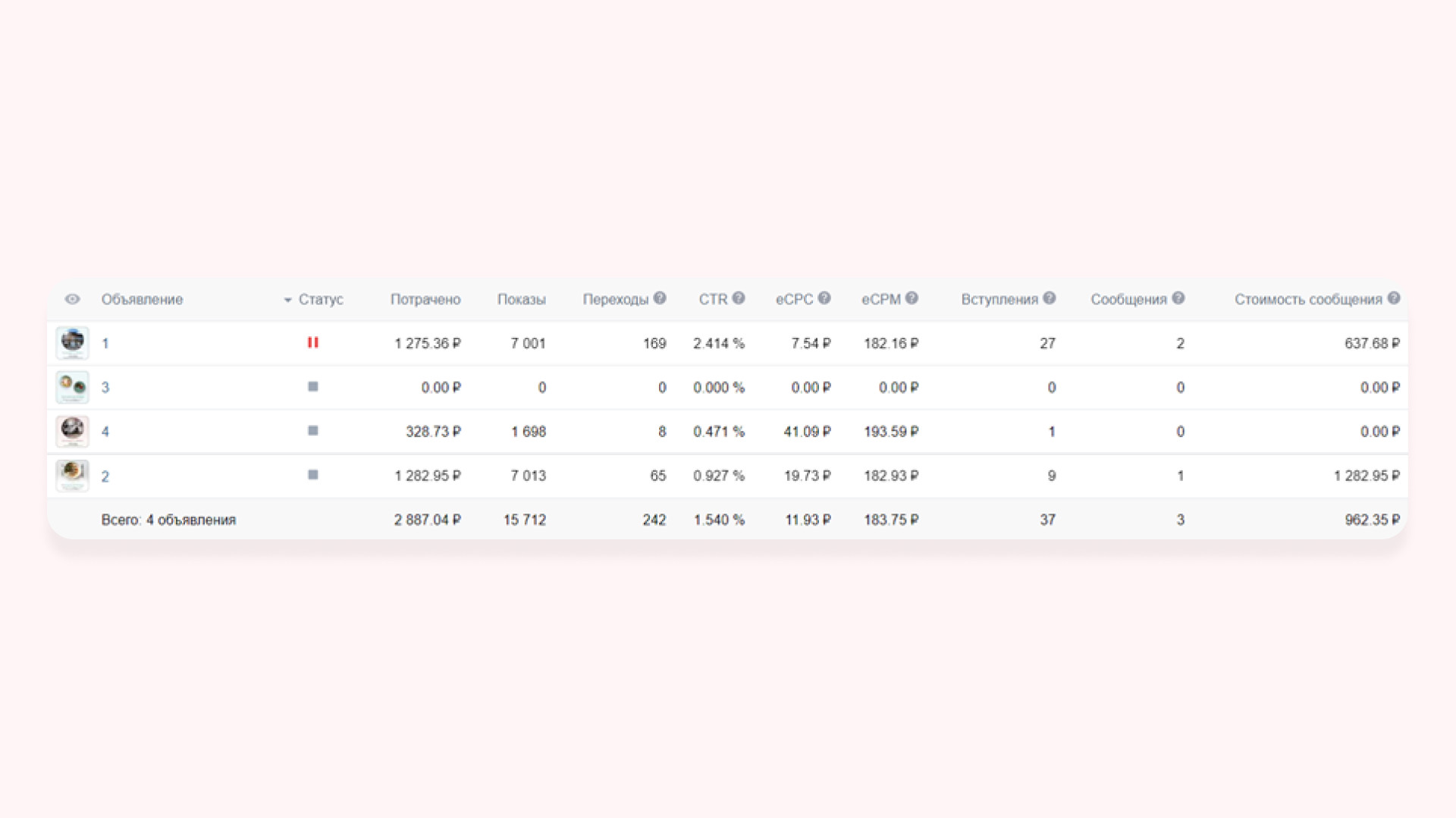 В работе использовали три формата рекламных объявлений: