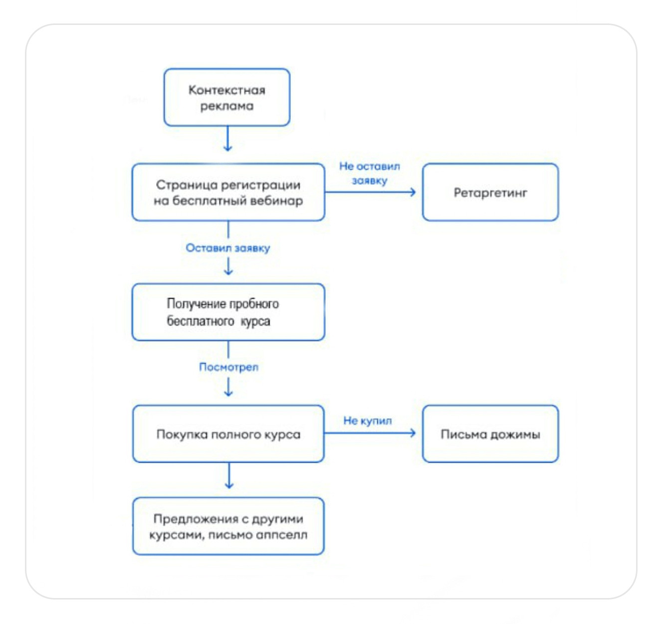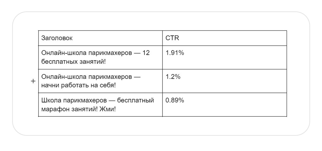 Человек кликает по рекламному объявлению и попадает на промостраницу бесплатного курса. Далее, в зависимости от его действий, ведем его разными путями. Если не зарегистрировался, но проявил интерес — настраиваем на него ретаргет по РСЯ и стараемся вернуть на сайт для регистрации. Если зарегистрировался — не бросаем, а заводим в соцсети или мессенджеры, и продолжаем взаимодействовать. Запустили одновременно два вида рекламных кампаний: сетевую и мастер кампаний, чтобы проверить эффективность каждой и выбрать наиболее подходящий формат. Сетевая кампания (РСЯ) Для того чтобы привлечь тех, кто ищет курсы для начинающих парикмахеров и быстро протестировать гипотезы, запустили одну рекламную кампанию на РСЯ. Разгруппировали её: по ключевым фразам, по интересам и по сайтам конкурентов. Уже за первую неделю получили 75 регистраций по 148р. Хуже всего сработала реклама по сайтам конкурентов. Она принесла за неделю 3 регистрации по 370р. , поэтому ее отключили. Лучше всего сработала реклама по прямым ключевым запросам, получили 44 регистрации по 104р. По результатам тестовой недели для повышения результата: В итоге за месяц благодаря правильно разбитой семантике и своевременной оптимизации получили 293 регистрации по 147 р. по рекламной кампании на РСЯ. Мастер кампаний Мастер кампаний — автоматический формат, который объединяет поисковые и РСЯ кампании. Отображается в поиске и сетях и эффективно распределяет деньги на каждое направление. Кроме того, помогает быстро анализировать эффективность работы заголовков, текстов и креативов. Кампанию запустили с ручной стратегией оплаты за клики, чтобы получить больший охват и собрать статистику. В итоге за первую неделю получили 20 регистраций по 186 р. Для оптимизации рекламной кампании расширили ключевые запросы, интересы и аудитории. В итоге за месяц получили 53 регистрации по 157 р. За месяц работы протестировали несколько видов кампаний, определили оптимальные и использовали новые инструменты — в результате получили 346 регистраций по 160 р. Нам удалось достичь поставленных целей заказчика — обеспечить стабильный приток заявок в рамках установленного бюджета. Чтобы продолжать получать регистрации ниже 160р. планируем: Хотите настроить продажи через сообщество во ВКонтакте?