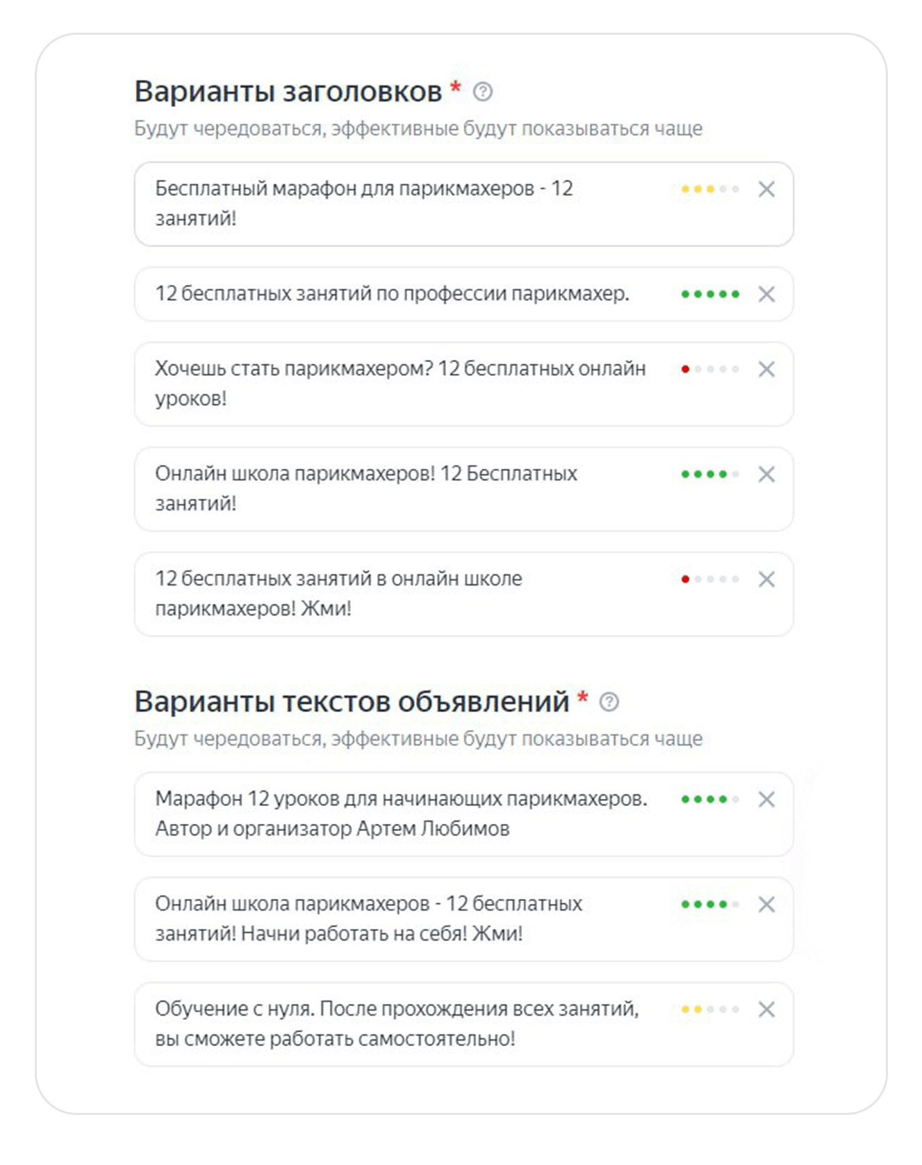 Попросили заказчика собрать промостраницу с предложением пройти марафон «12 бесплатных уроков для начинающих парикмахеров». На нее и запустили рекламу.