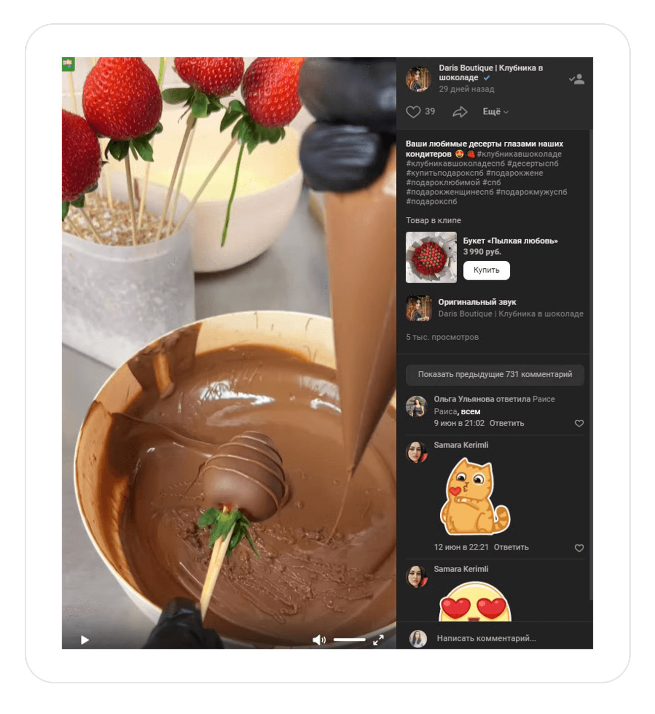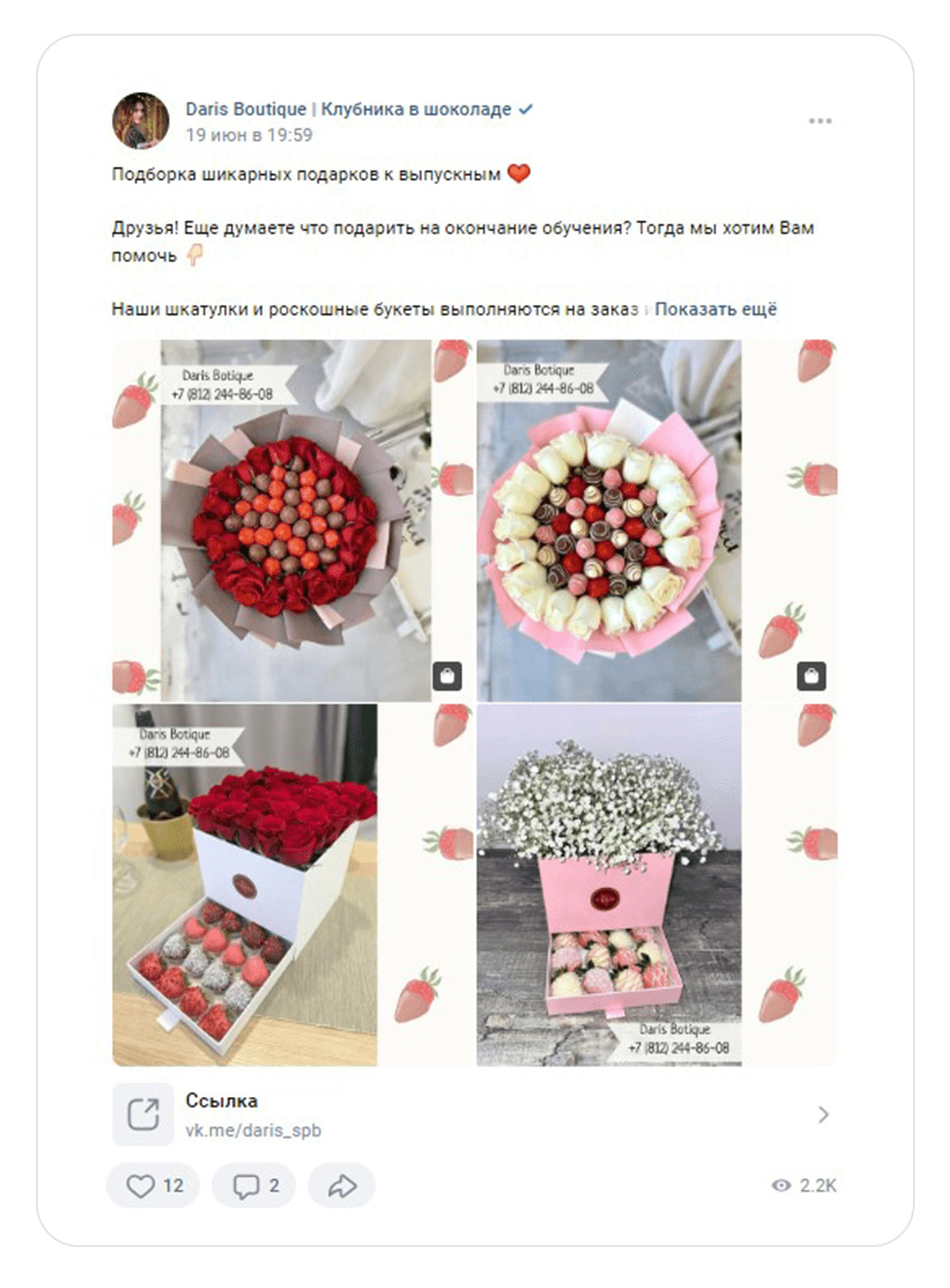 Салют! С вами Александр Верга и агентство the Verga. Работали с магазином Дариш, который продает шоколадные розы и клубнику в шоколаде в Санкт-Петербурге.