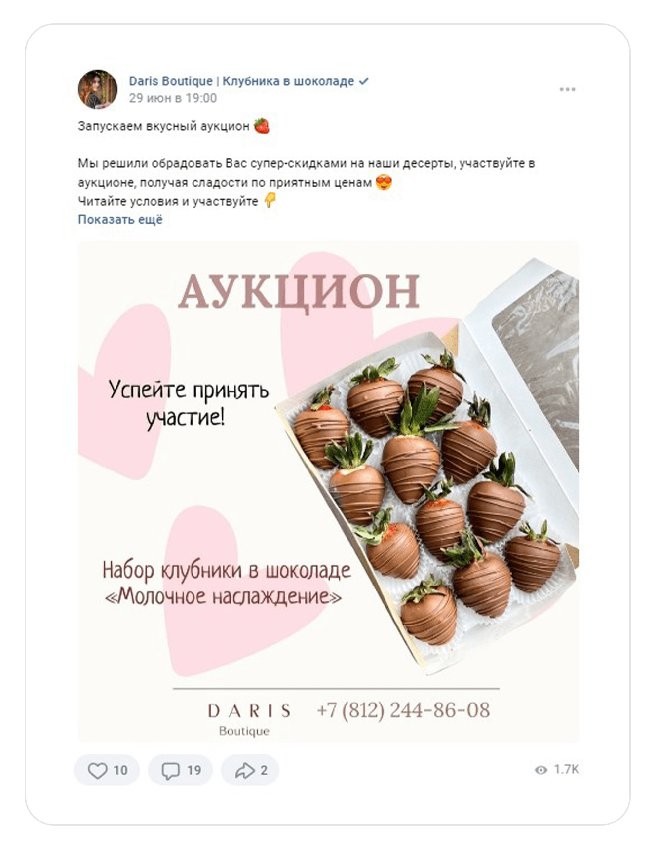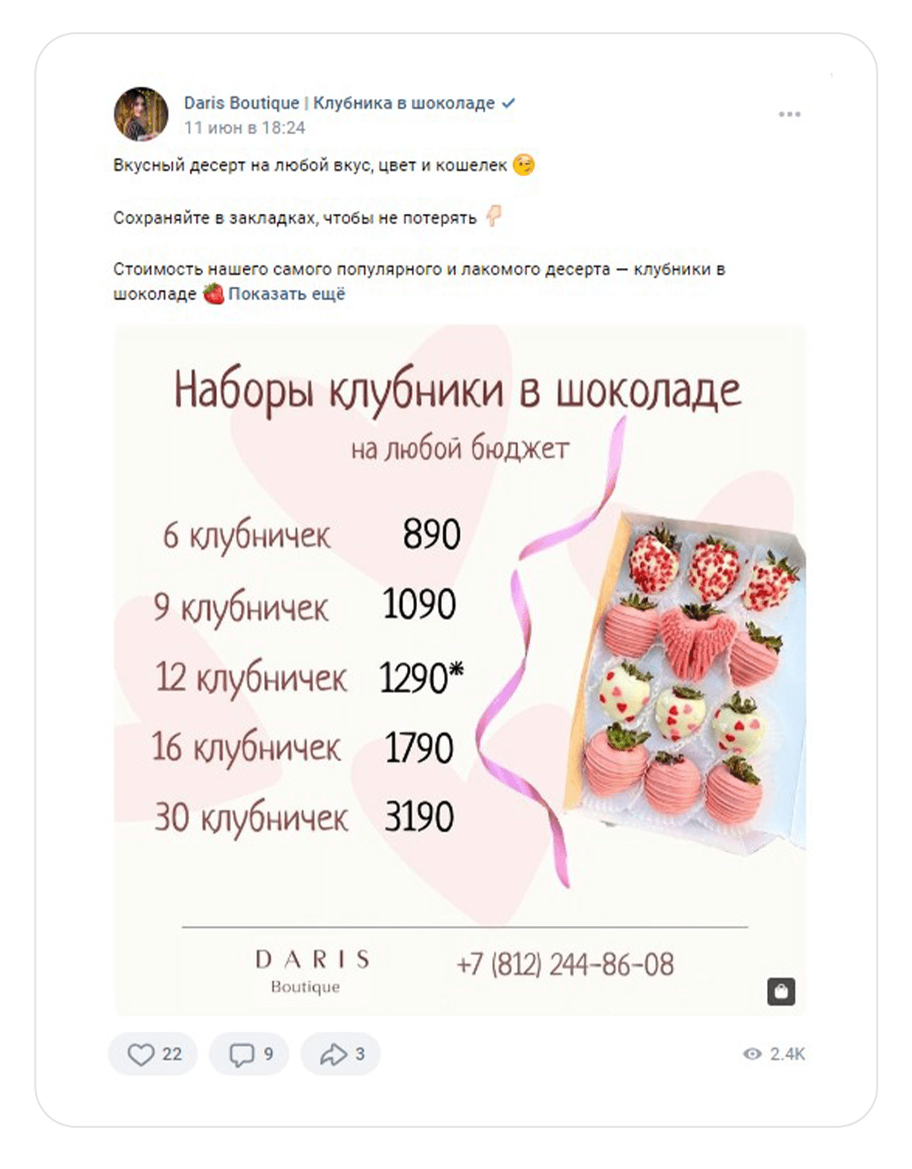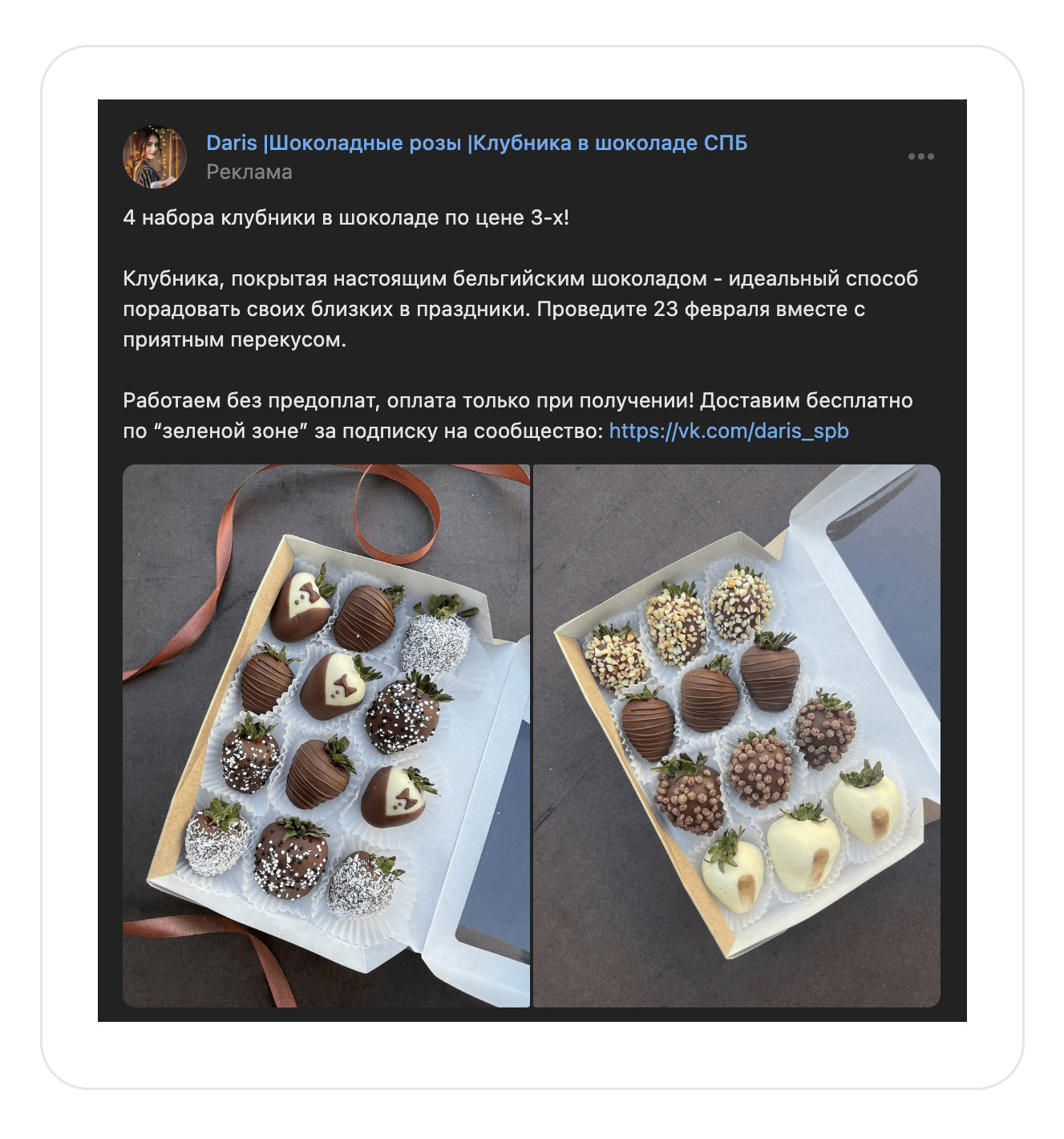 Кейс: клубника в шоколаде. 463 заявки по 183₽ за 2 месяца во ВКонтакте