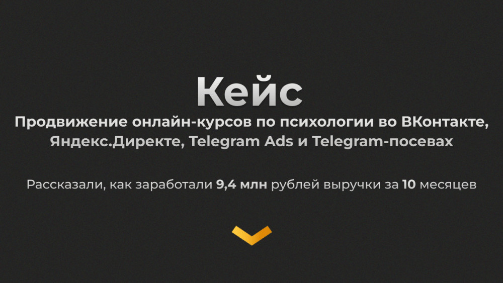 Кейс: Продвижение онлайн-курсов по психологии во ВКонтакте, Яндекс. Директе, Telegram Ads и Telegram-посевах — 9,4 млн рублей выручки за 10 месяцев