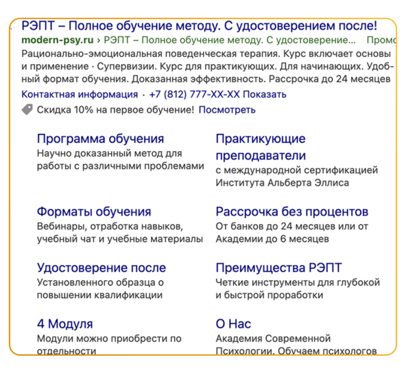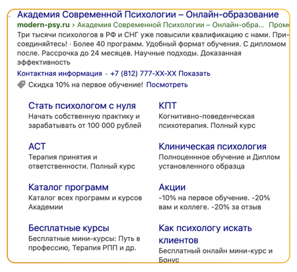 ✓ По прямым ключевым запросам ловили тех, кто уже ищет курсы. Запросы вроде «обучение для психологов», «курсы повышения квалификации для психологов» или «переподготовка по психотерапии». Эти люди готовы учиться — им нужно просто показать подходящий вариант.
