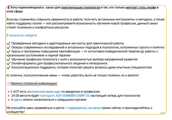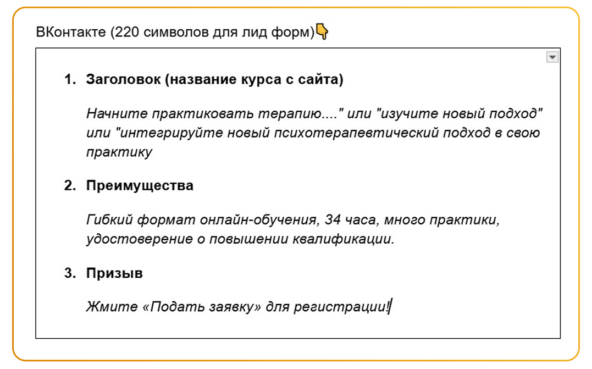 С сентября 2024 года начали рекламировать во ВКонтакте курсы повышения квалификации для психологов. Цель — собирать заявки на обучение.