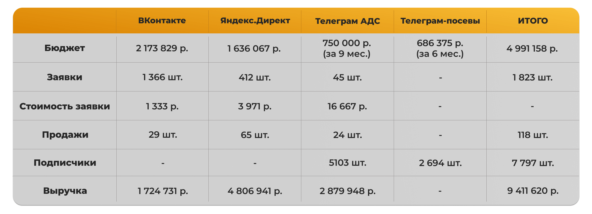 В следующих разделах подробно разберём, как выстраивали каждый канал и какие выводы сделали и что по итогу оставили в работе.