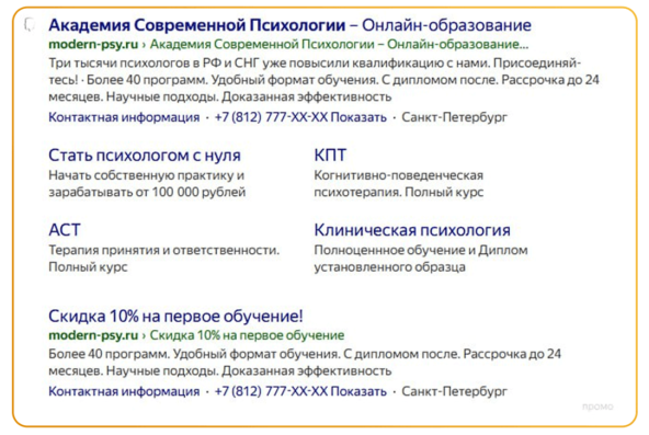 Начнем с самого результативного изменения — работы со ставками по брендовым запросам. Раньше мы использовали консервативные, средние ставки для запросов типа «Академия современной психологии». В результате реклама показывалась не всем заинтересованным пользователям — мы упускали часть готовых клиентов.