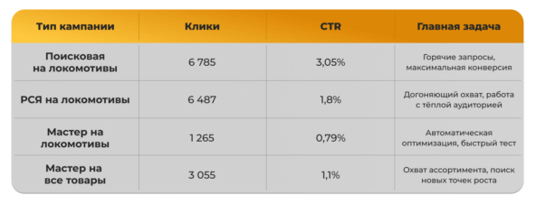 Мы предложили изменить подход: не рекламировать остатки в лоб, а запустить продвижение товаров-локомотивов на теплую аудиторию через Яндекс.Директ.