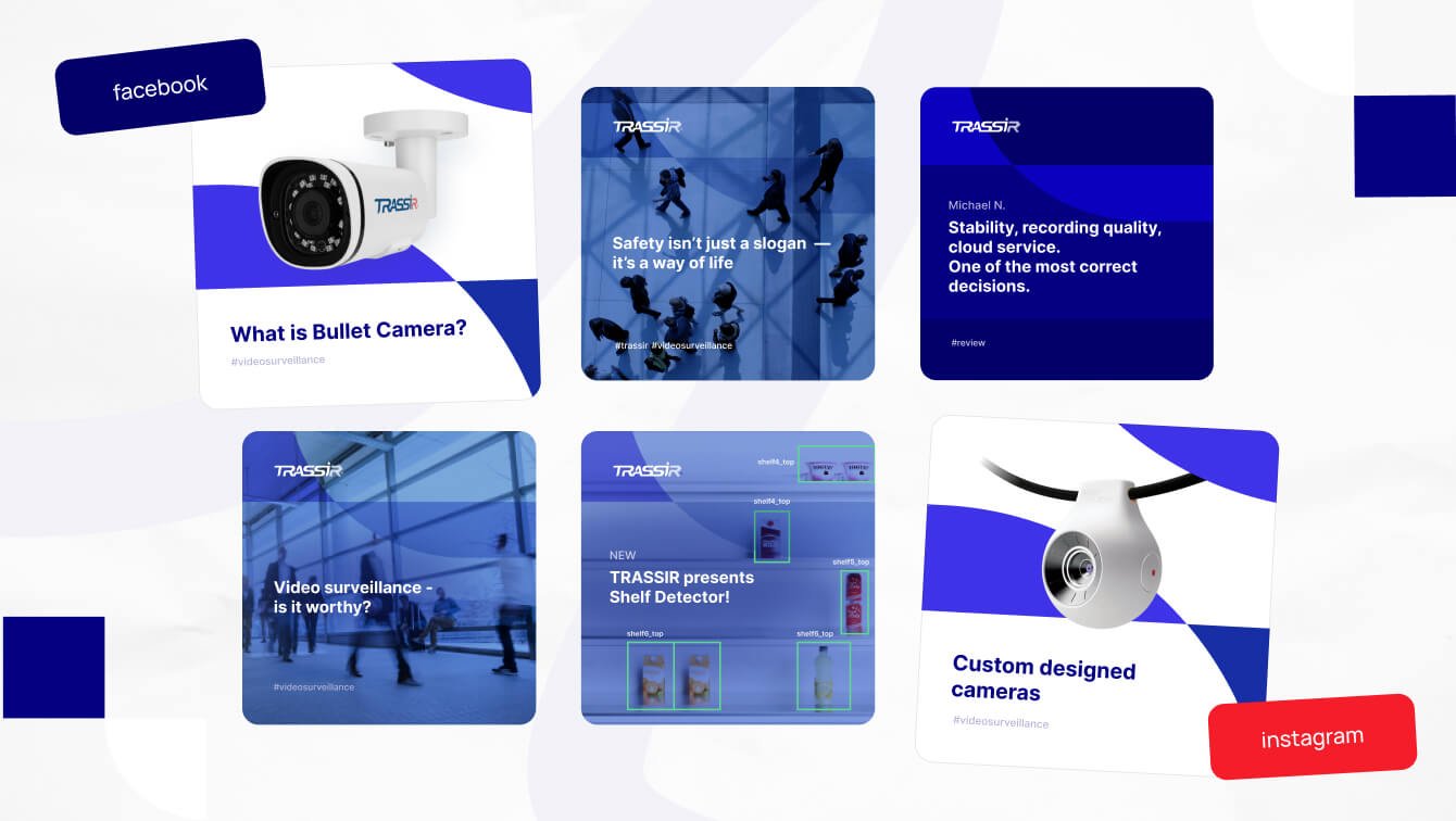 — запустили рекламную кампанию на трафик для соцсетей бренда. Мы проанализировали целевую аудиторию и выделили широкую (интерес к видеонаблюдению, бизнесу и безопасности) и узкую (инсталляторы систем видеонаблюдения). Анализ конкурентов в нише видеонаблюдения показал, что большинство из них практически не ведут соцсети (исключение — Hikvision и Dahua). На основе данных по продукту и целевой аудитории мы написали рубрикатор, с помощью которого каждый месяц собирали разные контент-планы для разных соцсетей. Учитывали оптимальное количество развлекательных, информационных и продающих постов для каждой соцсети для выхода компании на международный рынок. Для работы с визуалом мы использовали брендбук TRASSIR. Нужно было создать образ серьезной международной компании, которая занимает важное место на рынке. Цветовая гамма логотипа и других графических элементов подбиралась под фон изображения. В основном мы использовали стоковые изображения, связанные с тематикой поста. Когда это было возможно, брали фото от клиента (офис, работники, фото спикеров от компании на вебинарах и конференциях). В качестве языка для контента выбрали американский английский (в регионах работы он более распространен, чем британский), стиль официально-деловой, что облегчило выход на зарубежные рынки для компании. Учитывая специфику соцсетей, в Instagram* мы постили больше развлекательного контента, в Facebook* и LinkedIn, куда люди приходят узнать новости и обсудить какие-то рабочие вопросы, — преобладали новости сферы видеонаблюдения и факты о компании, статьи от сотрудников. Несмотря на оригинальные контент-планы, во всех трех соцсетях работал и кросспостинг. Подписывайтесь на наш ВК и Телеграм, чтобы узнавать последние новости интернет-маркетинга и подсматривать новые фишки продвижения. Больше всего взаимодействий (лайков, комментариев, сохранений) собирали посты с полезным контентом и чек-листами (например, как настроить домашнюю систему видеонаблюдения, какое оборудование нужно для настройки охранной системы). Хорошо себя показали подборки оборудования компании — камеры видеонаблюдения различного формата, видеорегистраторы, ПО, умные модули видеоаналитики. Контентом мы закрывали основные возражения клиентов: Рекламную кампанию по выходу компании на зарубежный рынок начали с Индии, так как плотность населения там выше, соответственно выше охваты, больше кликов и подписчиков больше. Первую РК сделали на охват. Нам нужно было познакомить максимальное количество людей с брендом перед тем, как предлагать подписаться. Мы подготовили несколько креативов для охватной стратегии с четкими посылами. Следующая РК была настроена на трафик для соцсетей бренда. Она показала, что большинство людей подписываются на Instagram. Поэтому для Facebook* мы выбрали продвижение страницы. После Индии мы аналогично работали в других регионах: Турции, ОАЭ, Катаре, Саудовской Аравии и Кувейте. Структура РК на трафик для всех стран была примерно одинаковой. Мы выделяли ЦА по социально-демографическим признакам (мужчины от 28 до 55 лет) и разделяли ее по группам интересов (видеонаблюдение, бизнес, охрана), создавая для каждой свои креативы. Что касается формата контента, лучше всего сработал пост, сториз собирали в разы меньше подписок, и мы в итоге от них отказались. Кроме РК на трафик мы тестир