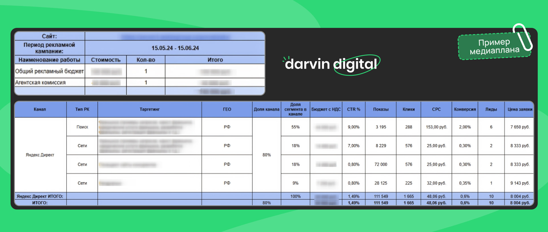 Медиаплан тоже можно бесплатно получить на нашем сайте.