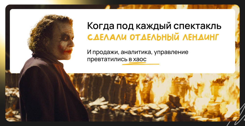 Клиент создавал под каждый спектакль отдельную посадочную, но с ростом географии и количества постановок система продаж превратилась в бардак