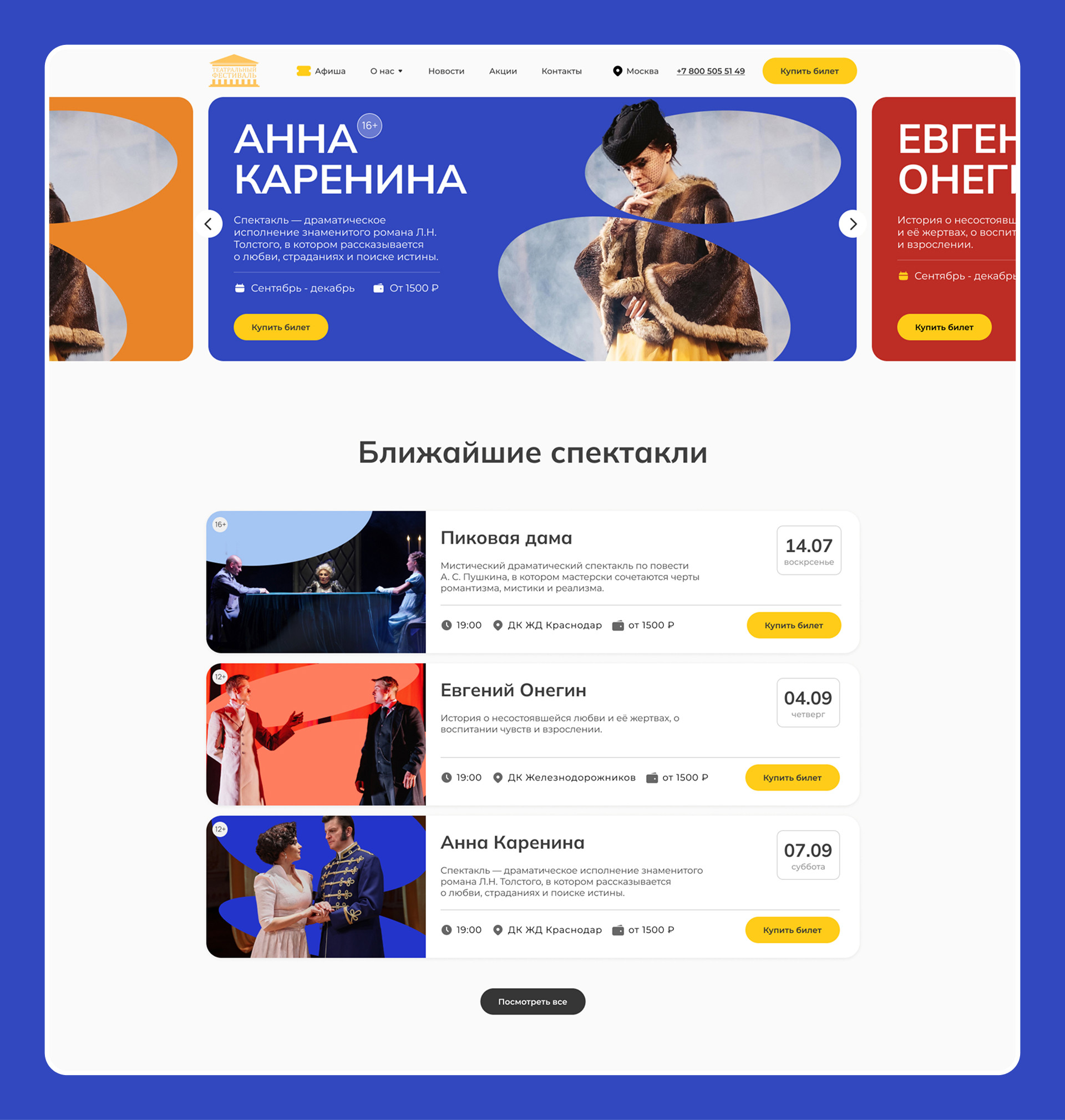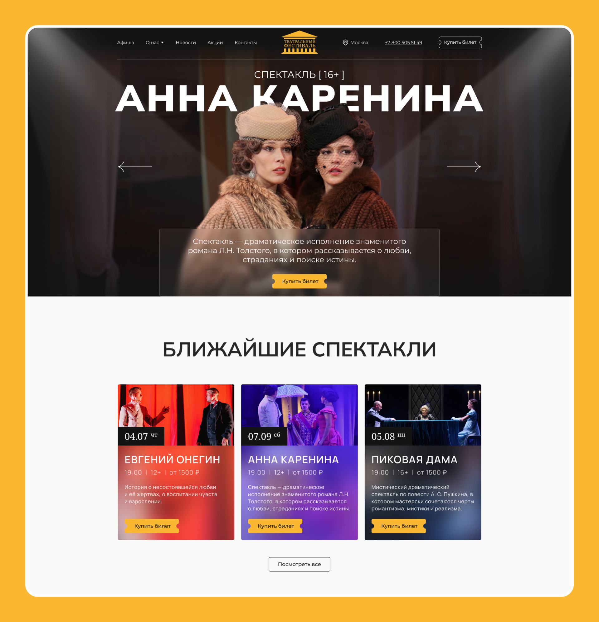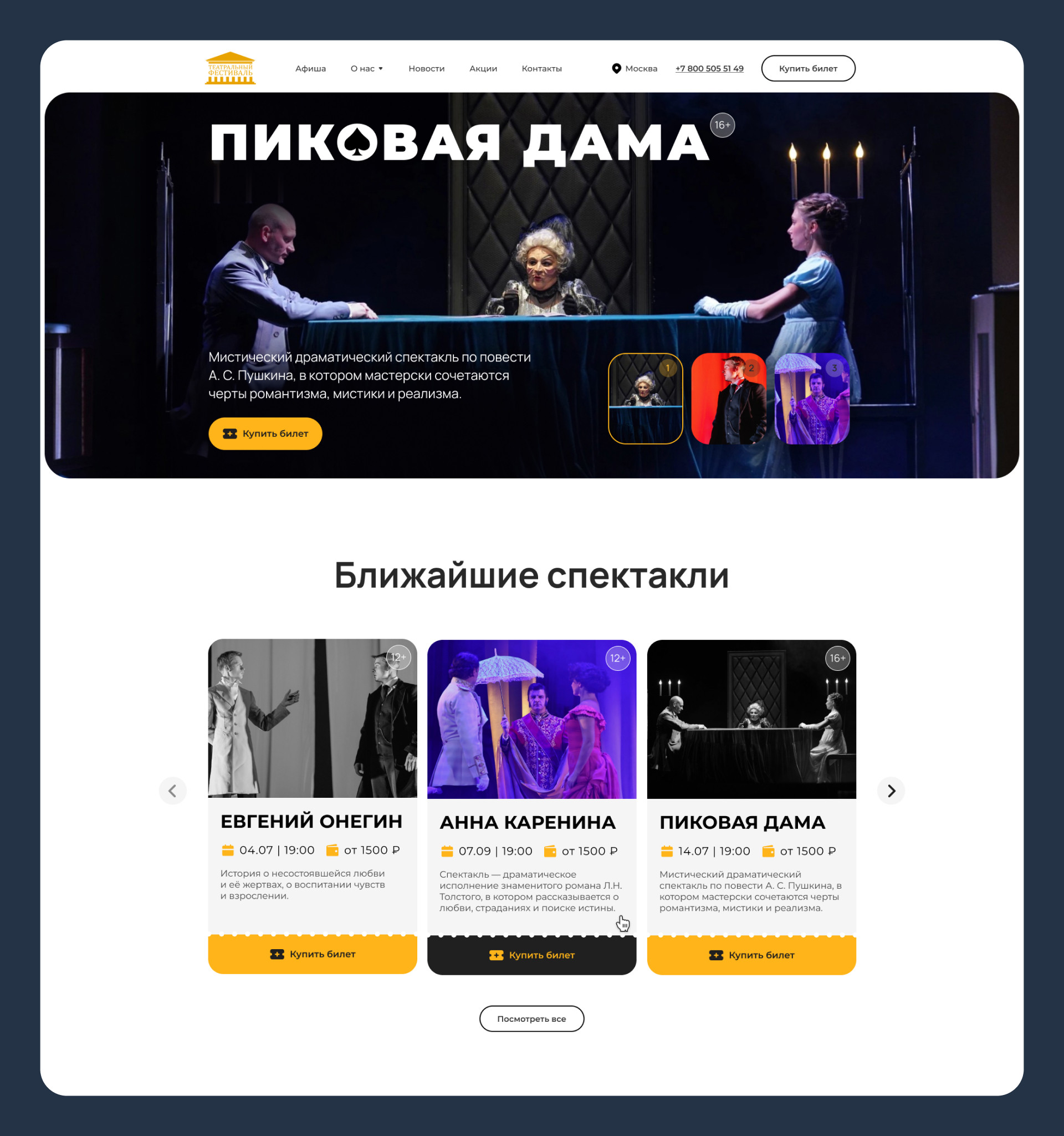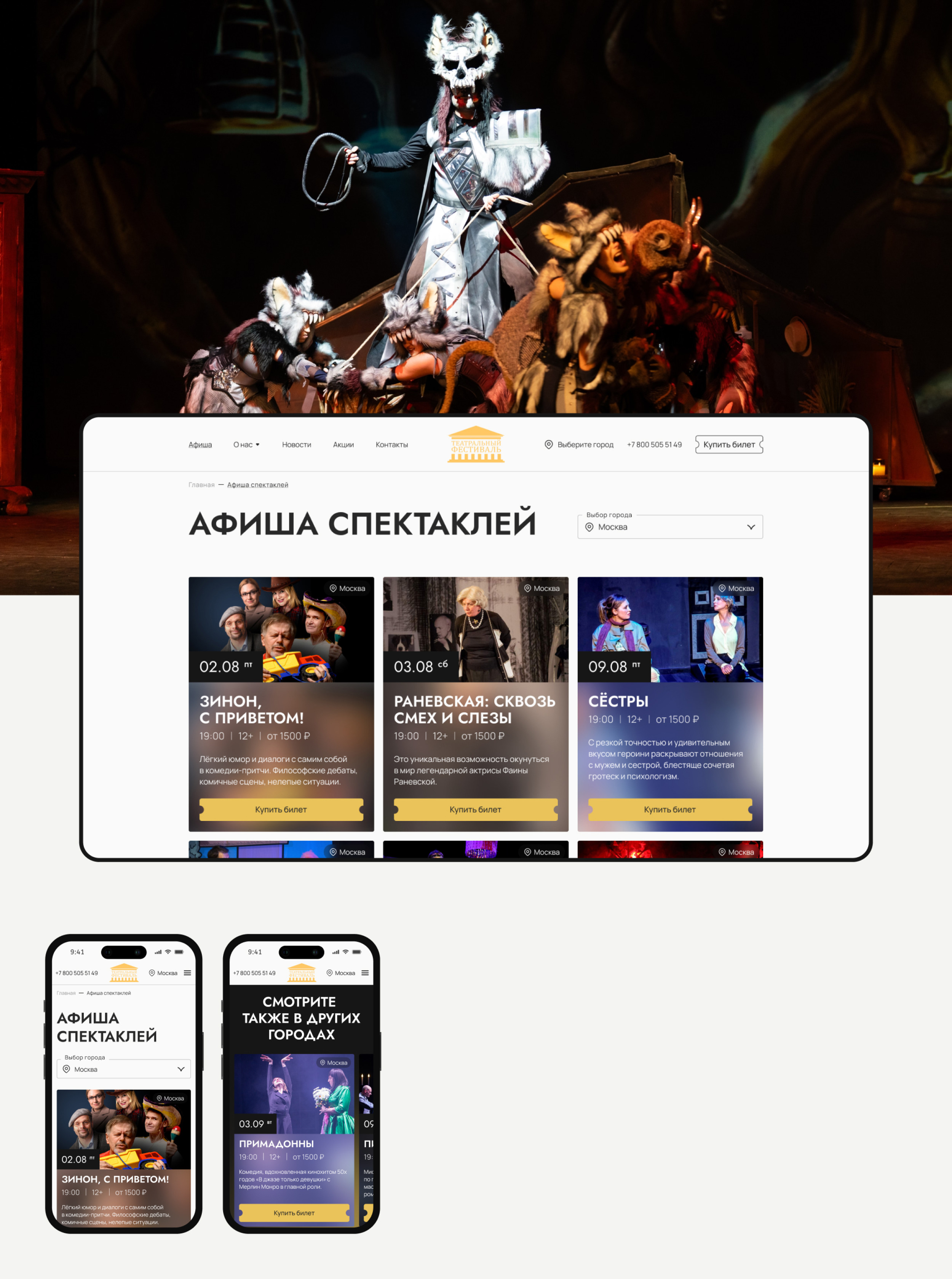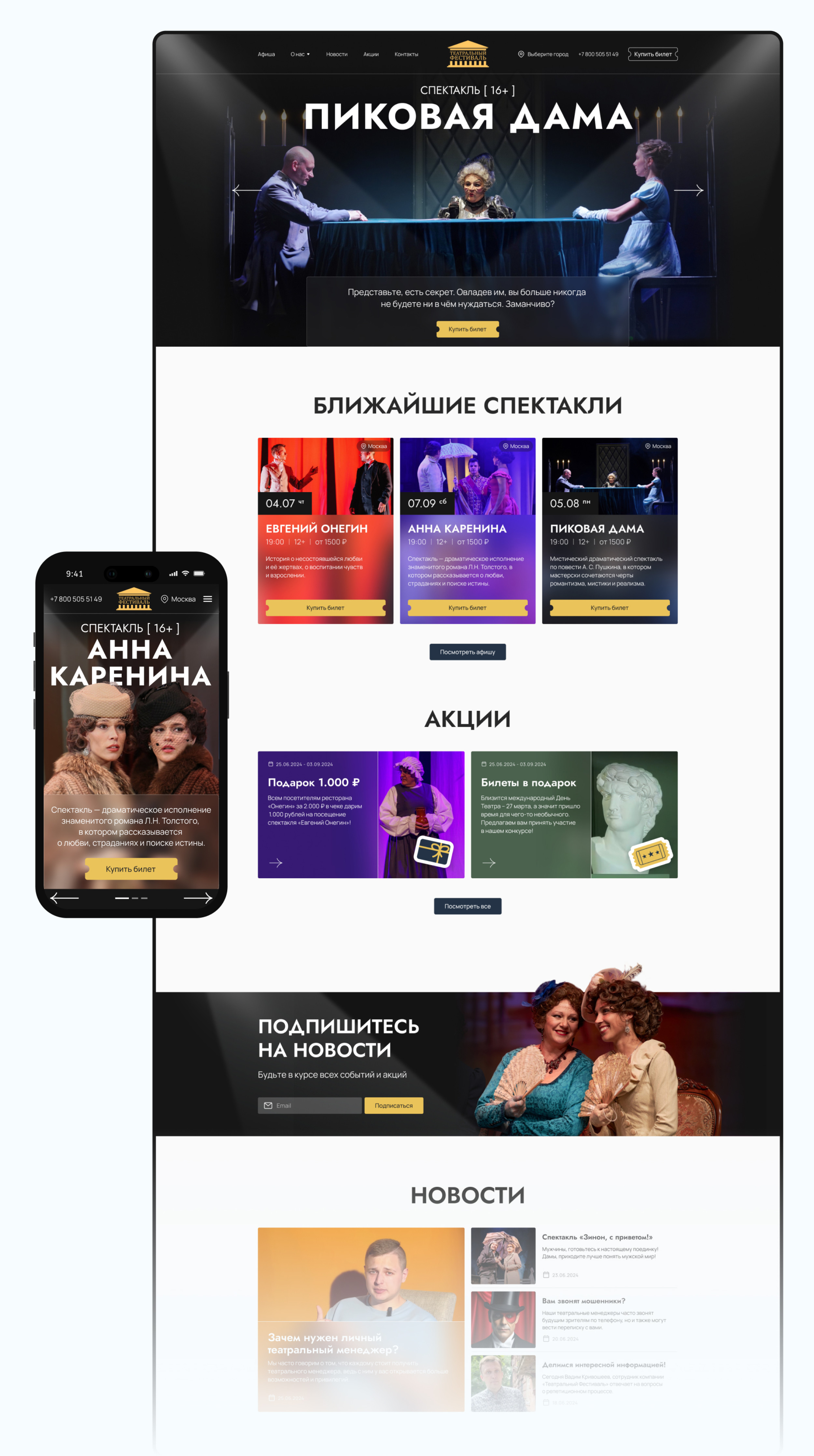 «Сайт получился атмосферным, но при этом очень прикладным: эмоция театра — в визуале, а продажа — в логике и навигации».