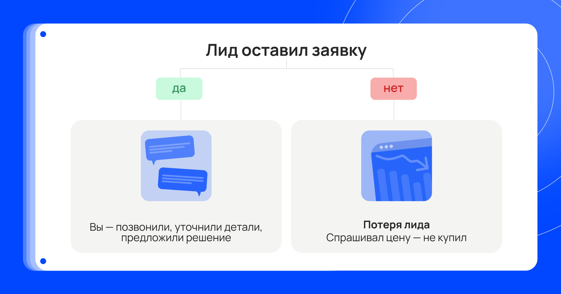 1. Долгий отклик. Перезваниваете через сутки? Конкурент уже заключил сделку с вашим лидом. И это не наши домыслы. Исследование, проведённое Harvard Business Review (участвовали больше 1500 компаний), показало: бизнес, который отвечают на заявку в течение первых 5 минут, в 9 раз чаще переводит лид в сделку, чем те, кто отвечает спустя час, и в 60 раз эффективнее, чем те, кто реагирует спустя сутки. Быстрая скорость обработки лидов — один из ключевых факторов успеха. 2. Некачественные первый контакт. Бот, который думает, что вы — бот. Менеджер, который путает имя или вовсе не звонит в указанные на сайте сроки. Всё это подрывает доверие и отбивает желание что-то купить у вас. Здесь потерянные лиды — это не ошибка, а закономерность. 3. Отсутствие регламента обработки лидов. Когда нет чёткого алгоритма действий и менеджер каждый раз действует по-новому и так, как ему хочется. 4. Нет учёта и анализа. Если вы не отслеживаете, что происходит с лидами на этапе заявки, вы не понимаете, где теряете деньги. А значит не можете повлиять на ситуацию. Предлагаем на конкретном примере нашего клиента разобрать, как это бывает. В Darvin Digital обратилась компания по продаже профессионального косметологического оборудования для лица и тела. Задача стандартная — увеличить трафик и заявки за счёт SEO и платной рекламы. Взялись особо не раздумывая: уже 16 лет продвигаем сайты в поисковых системах в России и за рубежом. Продвижение шло ровно: на сайте стабильно росло количество посетителей, стоимость и объём лидов были в норме для ниши. Казалось, всё работает правильно. Но клиент настаивал: «Лиды некачественные. Приходят физлица, всем дорого, никто не покупает». Решили разобраться. Менеджеры провели простую проверку: оставили заявку на сайте. Дело было днём, 21 мая в рабочее время. Никакого отклика не последовало: ни звонка, ни письма. Через шесть дней, 27 мая, решили позвонить самостоятельно. Но и дозвониться оказалось непросто. Звонок переадресовывали несколько раз, менеджеры путали имя, отвечали неуверенно. После разговора пришло письмо с материалами — заготовленный шаблон без обращения по имени и уточнений. А ещё через день поступил повторный звонок: «На склад приехала новая партия оборудования, можете купить». Всё. Без попытки понять потребность клиента, без аргументов и без продолжения диалога. Наш менеджер не был реальным покупателем, но ему всё равно отчаянно хотелось поискать товар в другом месте. Маркетинг отрабатывал идеально: реклама приводила релевантный трафик, посадочные страницы конвертировали посетителя в лид. Потеря происходила позже — в отделе продаж, где не было ни регламента, ни контроля. Каждый менеджер действовал на своё усмотрение. Заявки не фиксировали в CRM, сроки ответов не отслеживали. К сожалению, это типичная ситуация для малого бизнеса. Но на этапе первого контакта решается судьба сделки: клиент либо получает ответы на свои вопросы и покупает, либо уходит к конкурентам. Особенно это критично в B2C-сегменте, где выбор большой, а решения принимают быстро. В таких случаях помогает регламент — чёткий порядок действий после поступления заявки. В нём прописано, кто отвечает за первый контакт, что именно нужно сказать, через какие каналы связаться с клиентом и как зафиксировать обращение в CRM. Но важен не только факт звонка, но и его качество. Первые секунды общения 