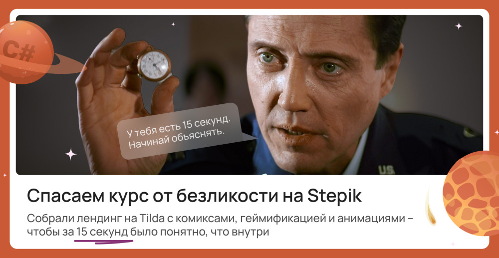 Stepik даёт промостраницу с готовой структурой и блоками (описание, программа, преподаватели, отзывы/комментарии). Проблема появляется, когда продукту нужно больше, чем быть просто карточкой проекта — страницу нельзя полностью настроить по дизайну и сценариям взаимодействия, как на отдельном лендинге. Подача курса здесь получается более универсальной, а управление восприятием ограничено. Параллельно существовала и группа во ВКонтакте. В ней публиковали полезные материалы и подогревали интерес к продукту. Но сайта, который бы системно презентовал курс, доносил его ценности и объяснял формат, уровень обучения, не было. И в случае с этим инфопродуктом от «Проциона» это было особенно важно. Потому что обучение программированию рассчитано на молодую аудиторию и использует геймификацию: материал подаётся в формате комиксов с космической тематикой. Это часть продукта и узнаваемости бренда. Поэтому нейтральная посадочная не подходила: возникал разрыв между тем, как курс ощущается на Stepik, и тем, каким он оказывается в реальности после покупки. И если для пользователей платформы Stepik такая посадка подходила, то для дополнительного трафика с других каналов — совсем нет: для холодного посетителя (не из группы в ВК) возникал бы явный разрыв между презентацией продукта и им самим — с комиксами и геймификацией. Задача, которая перед нами стояла, — собрать продающий лендинг в стилистике курса, который удерживает внимание и подводит к целевому действию. Важно было сделать страницу не просто красивой, а быстро погружающей в продукт. Почему быстро? Исследования, проведенные Google и Carleton University показывают, что первое впечатление о сайте формируется молниеносно: Ключевое отличие инфопродукта: товар нельзя просто показать на фотографиях или дать быстрое и наглядное сравнение «до/после». Обучение так не продаётся: человек покупает чужой опыт и его не видно вот так сходу. Поэтому, во-первых, лендинг должен был визуально совпасть с продуктом: тот же язык, та же «вселенная», тот же тон, чтобы человек зашёл и сразу понял атмосферу курса. Во-вторых, структура должна была быстро объяснять суть: что внутри и как устроено обучение, какой формат, на какой уровень рассчитано. В-третьих, анимации, которые были неотъемлемой частью презентации, должны были усиливать подачу и динамику, но не ломать мобильный опыт, потому что на Tilda — это чувствительная зона. Этот конструктор позволяет быстро собрать эффективный лендинг, но тяжёлая графика и сложная step-by-step анимация легко просаживают скорость загрузки, особенно на телефонах. За 17 лет работы агентства мы переделали десятки сайтов и поняли, в чём настоящая проблема: дело в управляемости. Сайт должен быть инструментом маркетинга, а не тормозом. В этой статье с кейсами подробно разбираем все известные конструкторы и CMS: WordPress, Tilda, Битрикс, кастомные CMS, Shopify. В материале делимся таблицей сравнения. Каждая платформа имеет сильные и слабые стороны. Важно выбирать ту, что решает именно ваши задачи. Если вы хотите быстро тестировать гипотезы, запускать кампании и не зависеть от программистов — ищите платформу, где правки можно делать самостоятельно. Клиент уже работал на Tilda, поэтому больше склонялся к этой платформе. Мы учли особенности конструктора: решили балансировать между авторским стилем и «тяжестью» лендинга, что