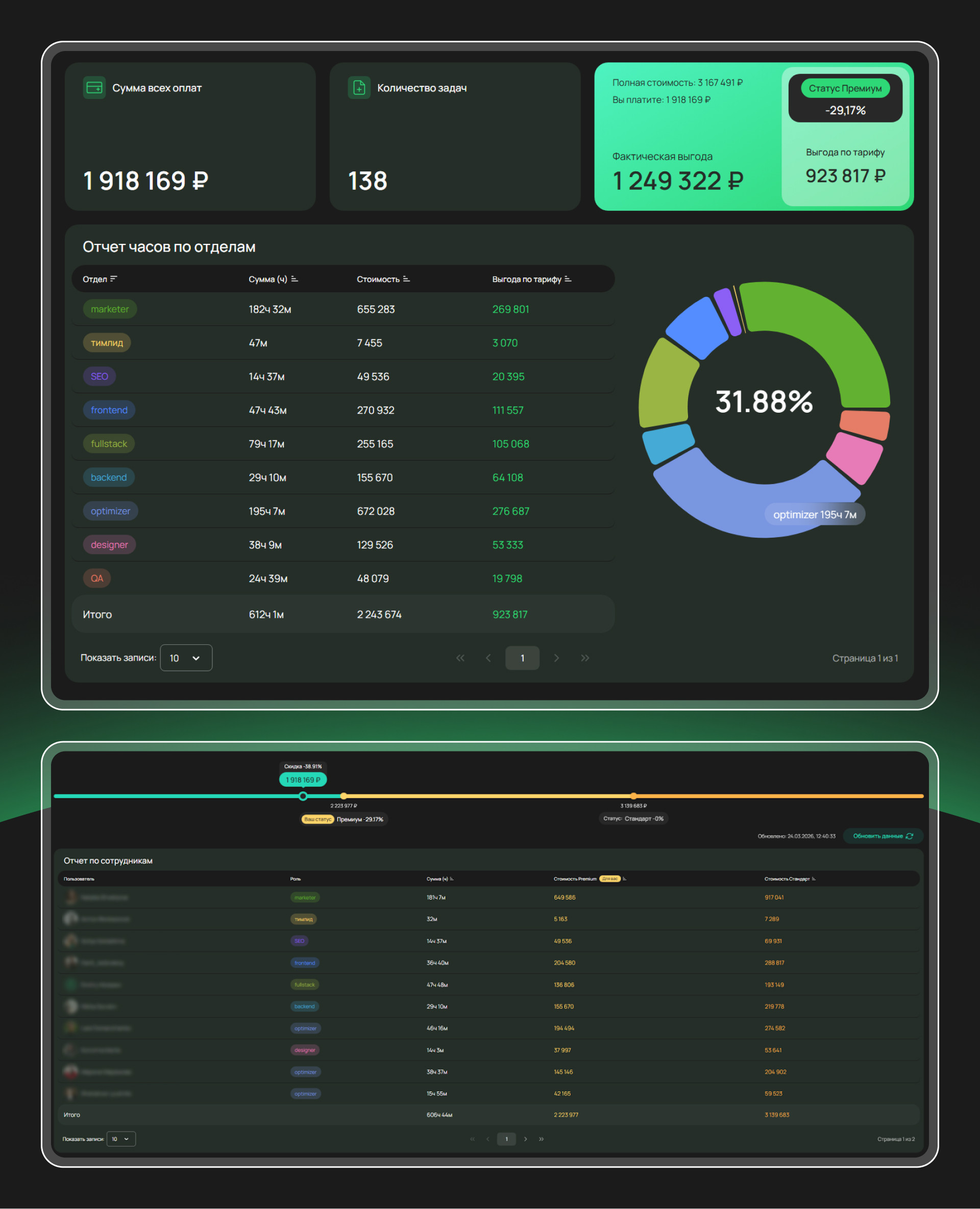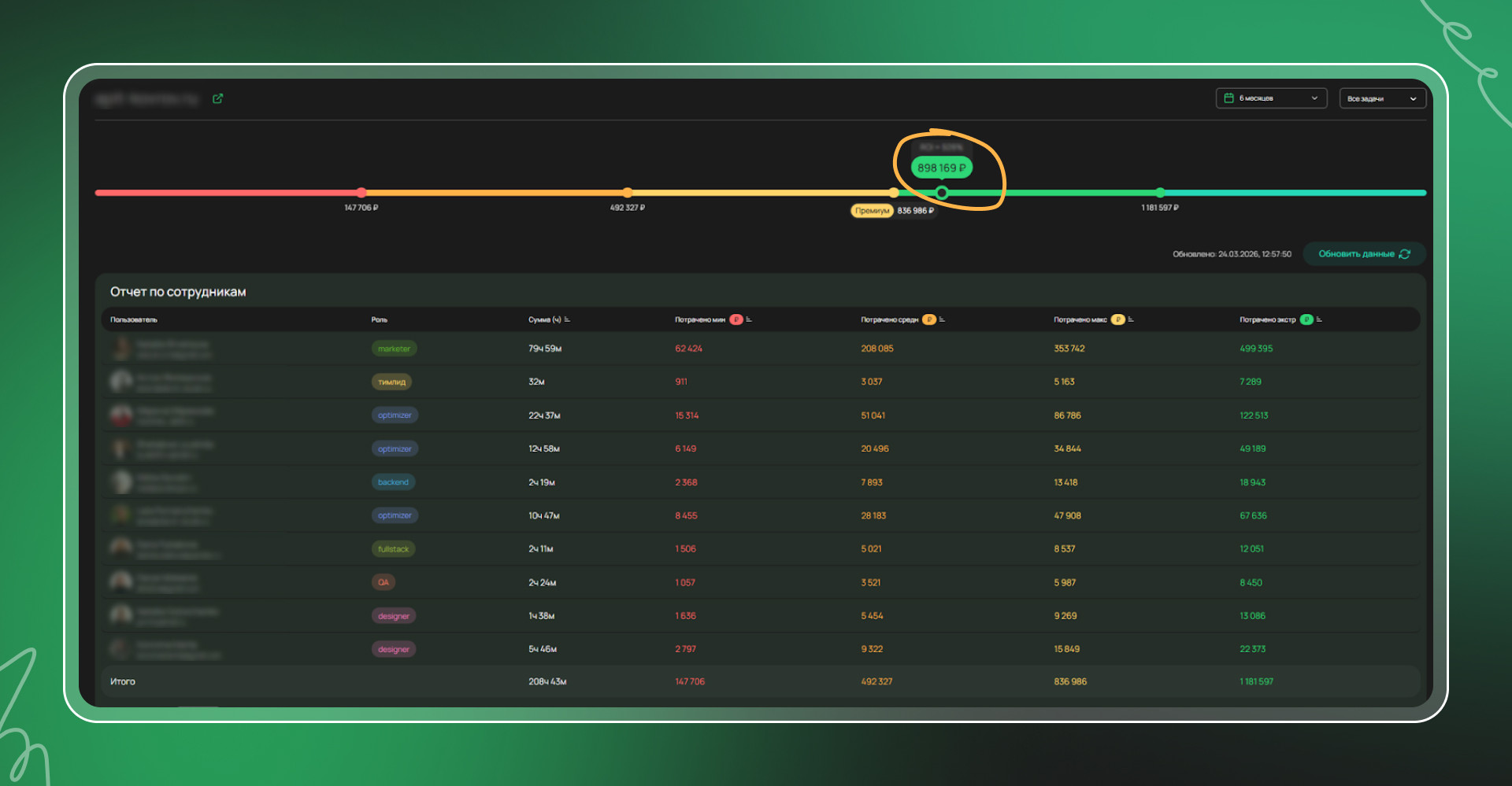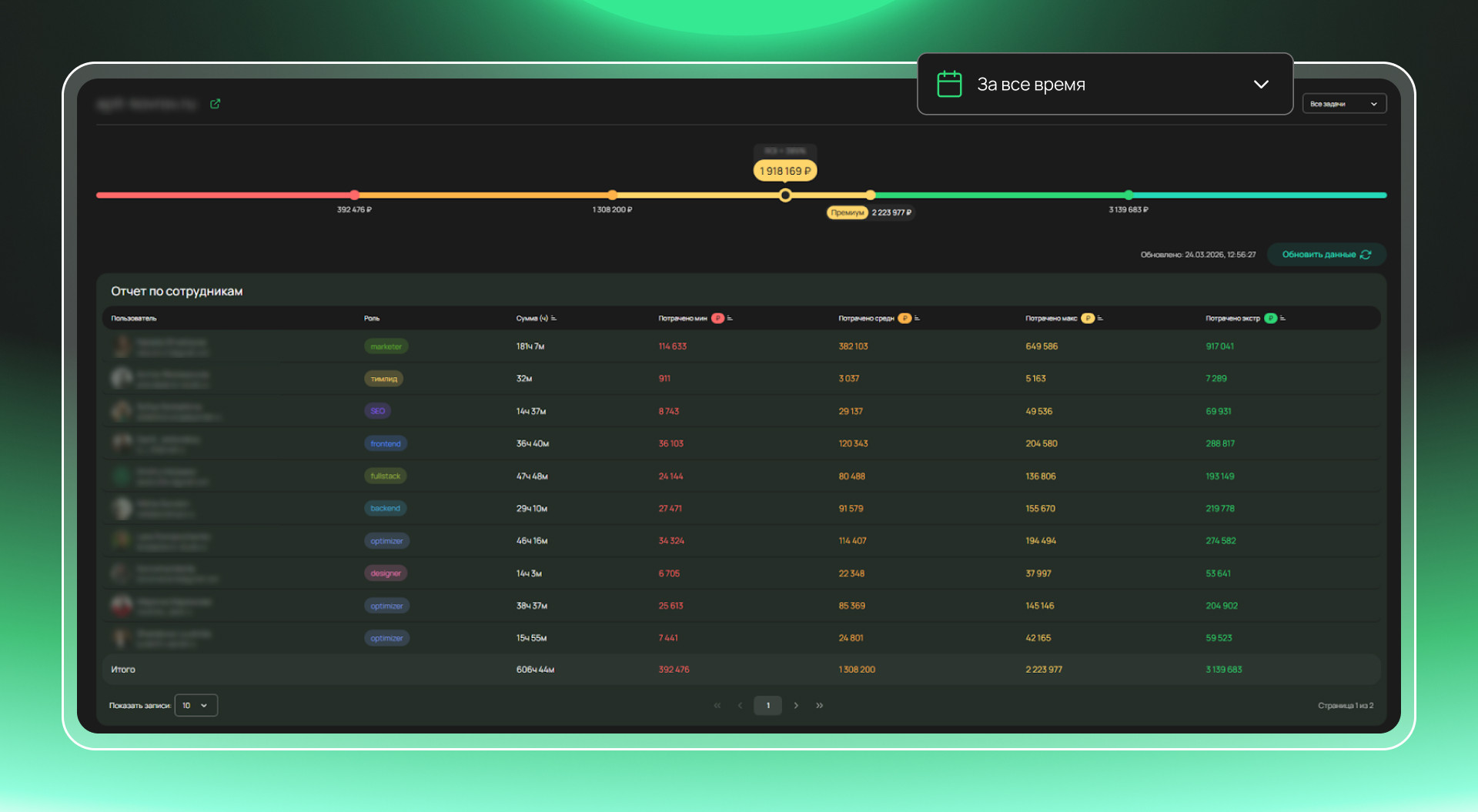 Вопросы эти были всегда, но сейчас стали возникать чаще. Причина простая: после старта массового использования нейросетей многие digital-задачи стали выглядеть простыми и почти бесплатными. Если текст можно набросать за несколько минут, а баннер — сгенерировать за 20, то у бизнеса возникает вполне логичный вопрос: за что тогда платить агентству такие деньги? Давайте углубимся. Да, нейросеть может помочь с идеями, ускоряет рутинные процессы — в общем, очень сильно экономит время на отдельных этапах. Но сам проект от этого не превращается в набор мгновенных действий. Здесь мы подробно рассказывали, с чем конкретно ИИ помогает нам в задачах по SEO, например. За любым результатом всё равно остаются постановка задачи, её выполнение, согласования, правки, аналитика, координация специалистов, приоритизация, контроль качества и ответственность за итог. То есть внешне работа как будто упростилась, а её внутренняя экономика никуда не делась. Клиент смотрит на задачу и думает: это же быстро. Агентство смотрит на тот же участок работы и видит целую цепочку действий, в которой участвуют разные люди и тратится вполне реальное время. Когда эту разницу никто нормально не объясняет, разговор о бюджете быстро скатывается либо в недоверие, либо в общие слова про экспертизу, опыт и сложность процессов. Обычный отчёт здесь помогает не всегда. Да, он честно показывает активность: провели аудит, проверили формы, обновили страницы, подготовили тексты, собрали рекомендации... Но для бизнеса это всё ещё не ответ на вопрос, почему работа стоила именно столько. Например, в отчёте может стоять строчка «проверили формы». Кстати, это реальный случай из практики. И со стороны это выглядит как мелкая техническая задача. Но внутри неё может быть поиск ошибки, перепроверка нескольких сценариев, взаимодействие с разработкой, повторное тестирование после правок и согласование результата. В отчёте указана выполненная задача, а логики её стоимости — нет. И у бизнеса возникает резонный вопрос, почему на «простую» задачу потрачено столько времени. То же самое происходит с аудитами, доработками, правками по контенту и даже простыми на вид изменениями на сайте. Если внутри нет понятной расшифровки, любая сумма начинает казаться завышенной. Именно поэтому бизнесу мало просто получать отчёт, недостаточно увидеть, что команда была занята и что-то делала в течение месяца. Нужен следующий уровень прозрачности: не только список задач, но и понятная логика бюджета. Что именно было сделано, сколько ресурсов это потребовало, специалист какого уровня работал над задачей и почему проект стоит именно таких денег. Без этого даже хорошая и добросовестная работа легко начинает выглядеть как набор непонятных действий с нестабильным ценником. Когда нам впервые пришла в голову идея найти решение проблеме отчётности, ситуация в агентстве выглядела так: параллельно шли разные проекты, нагрузка по ним постоянно менялась, а работала с ними одна и та же команда. В один месяц больше времени уходило на одни направления, в другой — на другие. Где-то подключалась разработка, где-то дизайн, SEO, а где-то всё сразу. И в какой-то момент становилось трудно ответить на простой вопрос: сколько на самом деле стоит конкретный проект для самой команды. Мы пытались считать вручную. Смотрели задачи в Kaiten, выгруж