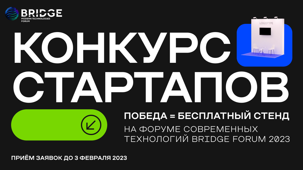 В рамках международного форума BRIDGE пройдет конкурс стартапов в IT-сфере, где победителям будет предоставлена возможность разместить свой стартап на стенде стоимостью 200.000 рублей бесплатно.