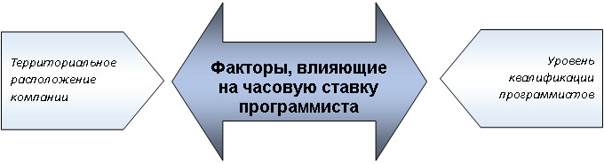 В основе этой группы факторов лежат издержки компании, связанные с работой проектной команды, и включающие в себя заработную плату программистов, непосредственно задействованных в проекте. А также плату за управление проектом — заработную плату менеджера проекта.