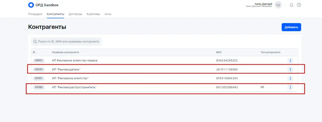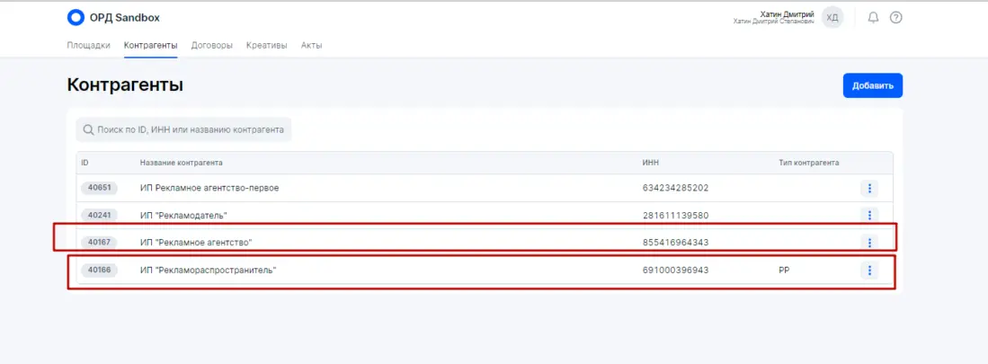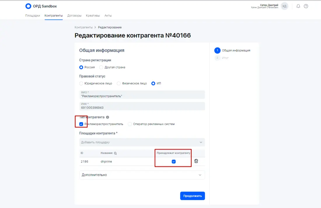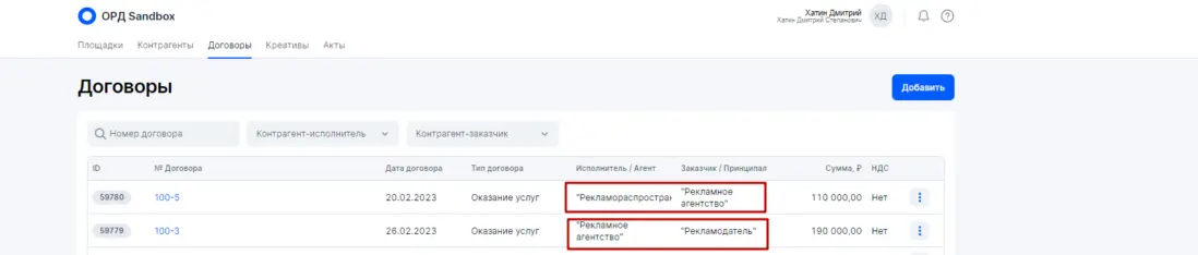 - По закону только изначальный Рекламодатель (статус Расходный договор) может делегировать оформление данных в ОРД (оператор рекламных данных) своему ближайшему Контрагенту