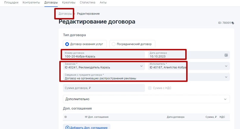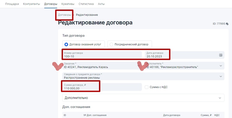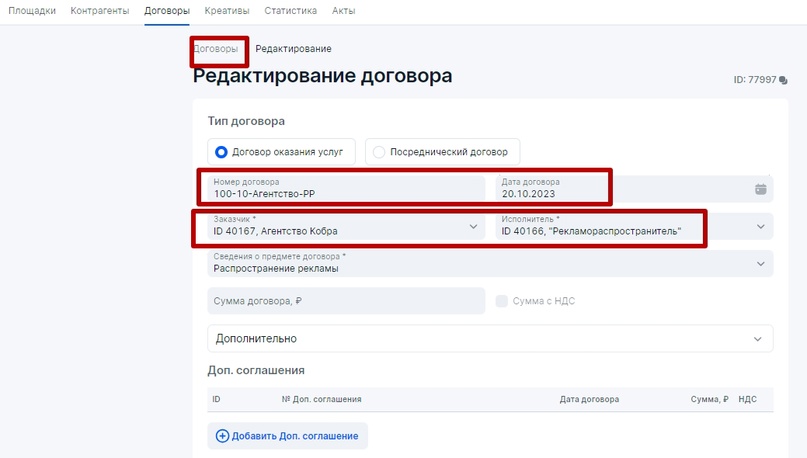 Важно понимать, что в договоре между контрагентами всегда необходимо закреплять, кто из контрагентов будет выполнять конкретные работы по отчетности в ОРД для всей связки Заказчик-Подрядчик. Иначе штрафы могут коснуться каждого контрагента по текущему договору, а не только того у кого был Доходный договор. Поэтому наличие договора между контрагентами, где четко прописано, кто и какие работы выполняет в ОРД, всегда лучше, чем работа просто по счету, счет-договору либо счету-оферте, где не в полной мере обозначены обязанности сторон по исполнению закона о маркировке рекламы.