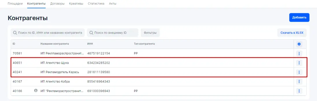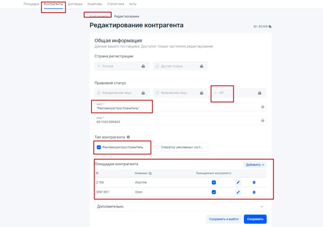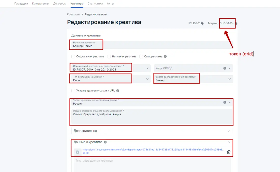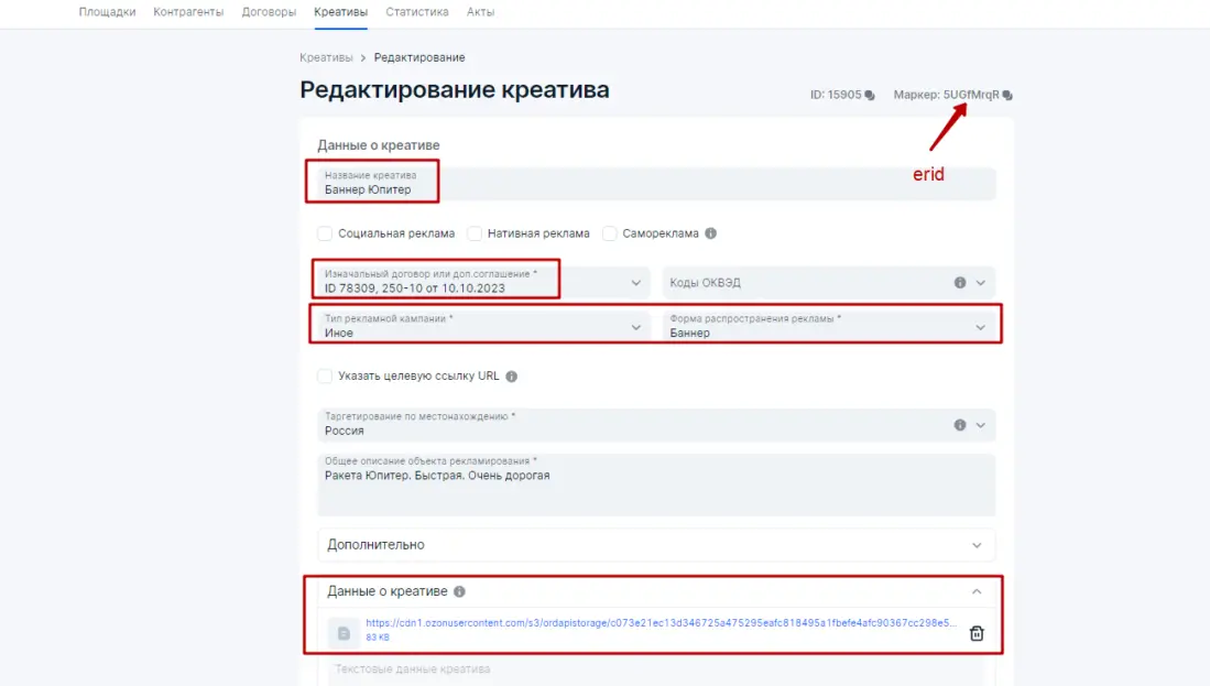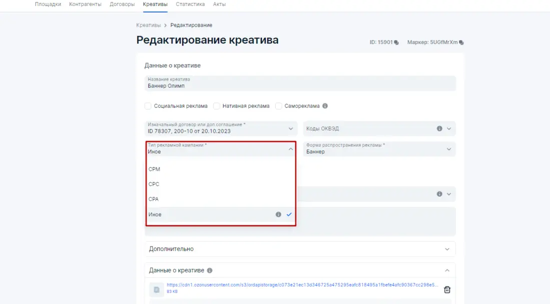 Стоит заметить, что все ОРД (оператор рекламных данных) имеют свою специфику в плане оформления интерфейса, но все они выполняют единые требования ЕРИР (единый реестр интернет-рекламы).