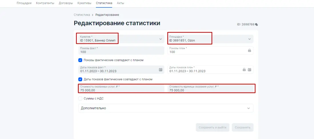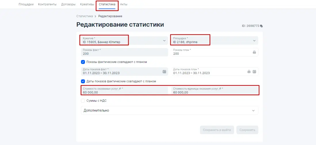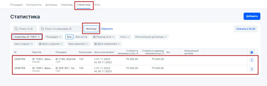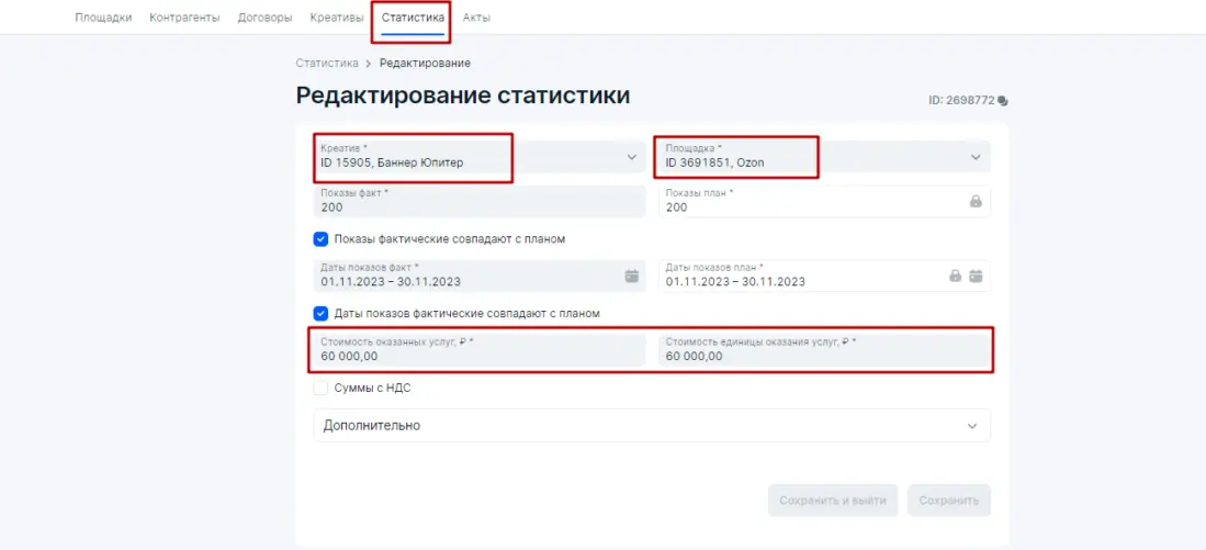 Поэтому гайд по настройке ОРД Озон является системным и может быть интегрирован для других операторов рекламных данных, такие как ОРД ВК, ОРД Медиаскаут, ОРД Лаборатория разработки от Сбер, Первый ОРД и ОРД-А, где в интерфейсе имеет место полноценное разделение блока Статистика и блока Акты ОРД.