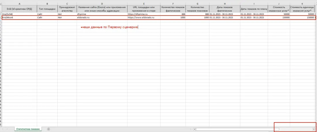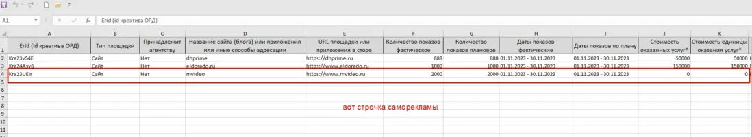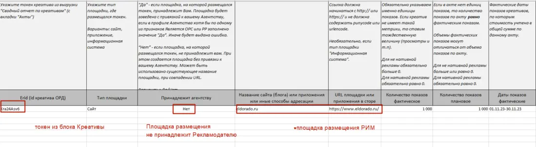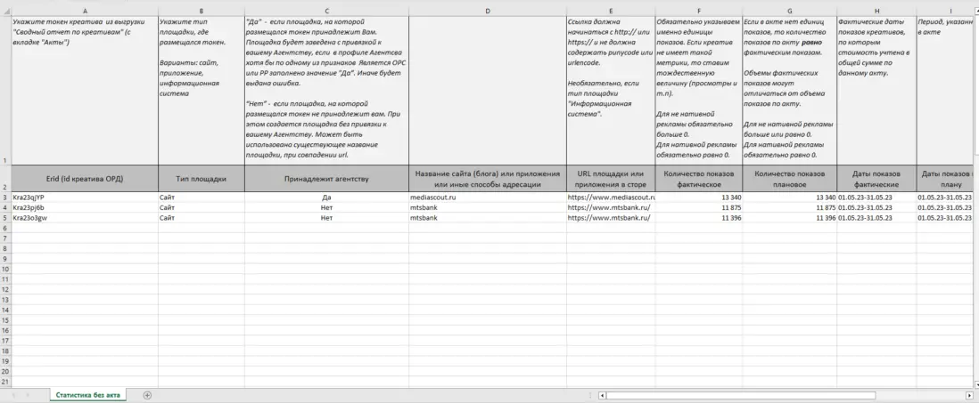 Оформление отчетности в ОРД при этом может быть проведено и данные без проблем уйдут и будут приняты в ЕРИР, поэтому никаких претензий от ФАС и Роскомнадзора не будет иметь место.