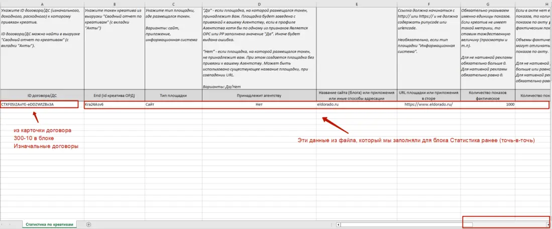5. Как следствие п.п. 1-4, в договоре между контрагентами всегда необходимо закреплять, кто из контрагентов будет выполнять конкретные технические работы по отчетности в ОРД для связки (договор) Заказчик-Подрядчик, чтобы избежать дублирования данных, поступающих в ЕРИР (единый реестр интернет-рекламы).