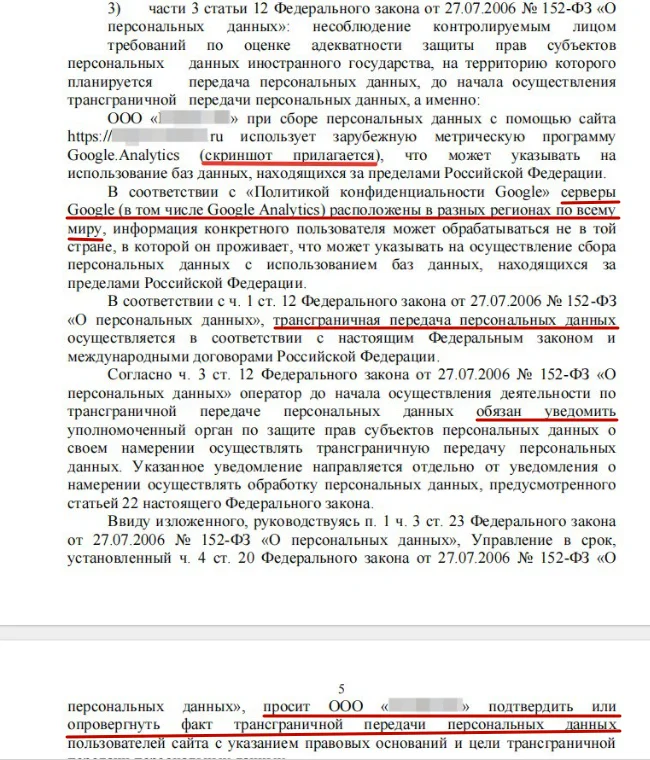 Роскомнадзор в последние месяцы активизировал проверку сайтов на предмет использования зарубежных сервисов, в чстности Google Analytics. На практике мониторинг осуществляется автоматически — регулятор выявляет сайты с установленными иностранными счётчиками и направляет владельцам письма с вопросом насчет соблюдения статьи 12 закона 152-ФЗ от Трансграничной передачи данных. Если сайт попадает под проверку, инспекторы также анализируют:
