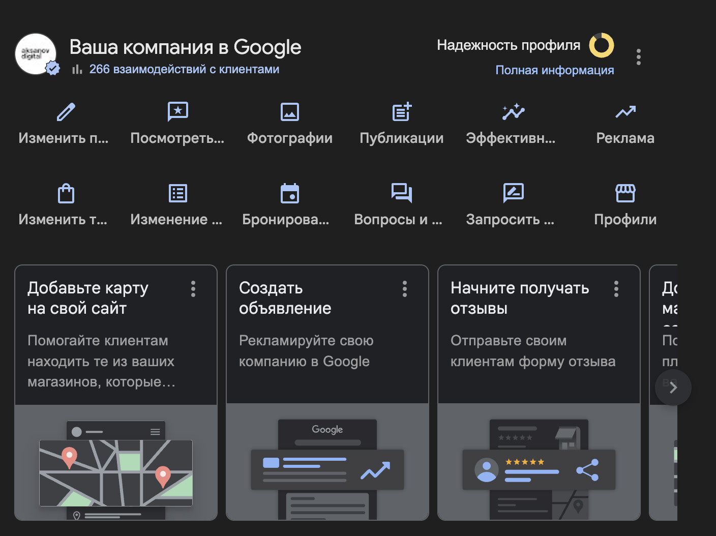 Поэтому Google в локальной выдаче опирается на три вещи: релевантность запросу, расстояние до пользователя и известность бизнеса (prominence). Эти три фактора Google сам называет ключевыми для локальной выдачи. Да, основной геотрафик в РФ у Яндекса и 2ГИС. Яндекс сам публиковал, что суммарная уникальная аудитория его геосервисов — 90 млн пользователей в месяц, а MAU приложения Яндекс.Карты — 46 млн. РБК писал, что к июлю 2025 ежемесячная аудитория 2ГИС достигла 86,9 млн. Но именно из-за того, что большинство компаний делает ставку только на Яндекс и 2ГИС, Google-карточки во многих нишах остаются заброшенными. Плюс: в Google-карточках во многих нишах конкуренция ниже — поэтому результат часто быстрее при тех же усилиях. Ещё: мобильная база. По данным того же StatCounter Android около 70% мобильного рынка, а Chrome — самый массовый браузер (~54% в декабре 2025). Если коротко: значительная доля аудитории пользуется Android и Chrome — значит, карты Google у них периодически под рукой. Настройка Google Business Profile — это набор сигналов для алгоритма и людей. Релевантность вы доказываете категорией и содержимым карточки. Расстояние — корректным адресом и зоной обслуживания. Известность — отзывами, активностью, упоминаниями и общей согласованностью данных о компании в интернете. Если хочется быстрый тест: откройте 5 лидеров в карте по вашим запросам и сравните по чек-листу — категория, услуги, фото (реальные и как часто обновляют), свежие отзывы, ответы владельца, заполненность. В большинстве ниш разница видна глазами. По опыту у топа обычно всё заполнено и регулярно актуализируется — услуги, категории, ответы, обновления. А у середины часто пусто или сделано один раз и забыто. Главная категория в профиле — один из ключевых факторов релевантности. Ошибка многих: выбирают примерно подходящую. Например агентство маркетинга может вписать сразу 15-20 направлений. Рабочий подход — посмотреть, какие категории стоят у тех, кто уже в топ-3 по вашим запросам, и ставить то же самое, если это реально про ваш бизнес. Заодно фиксируйте у лидеров: главная категория, доп.категории, список услуг — это быстрее всего даёт прирост релевантности. Обычно ломают вот здесь: ставят слишком широкую категорию, потому что «так солиднее». В итоге карточка хуже попадает в запросы, по которым реально ищут ваши услуги. Название может усилить релевантность, если в нём есть то, как вас ищут. Но важно не дописывать ради SEO — по правилам Google это должно быть реальное название. Если у вас официально «X Marketing», а вы вписываете «X Marketing — агентство маркетинга и аналитики», то потом прилетают проверки и ограничения. Google сильнее тянет вверх тех, кто ближе к пользователю. Поэтому адрес и зона обслуживания должны быть оформлены честно и понятно. Если вы показываете адрес, это должна быть реальная точка. И не пытайтесь рисовать сеть филиалов — часто это заканчивается блокировками. Накрутка отзывов — высокий риск: удаление отзывов, ограничения на новые отзывы, предупреждения в профиле. Работает лучше всего честная механика: регулярно просить отзыв после оказанной услуги и давать человеку прямую ссылку на форму. Плюс отвечать и на хорошие, и на плохие — это заметно влияет на доверие. Лучший момент — сразу после закрытия работ/выдачи заказа/подписания акта/обслуживания клиента. На практике люди чаще не против оставить отзыв — они просто забывают