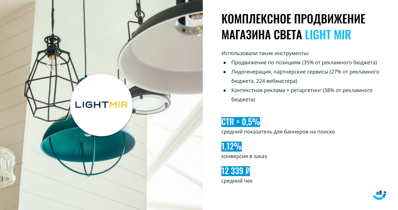 Комплексное продвижение. Да будет свет: как увеличить средний чек до 12+ тысяч рублей для магазина света Light Mir