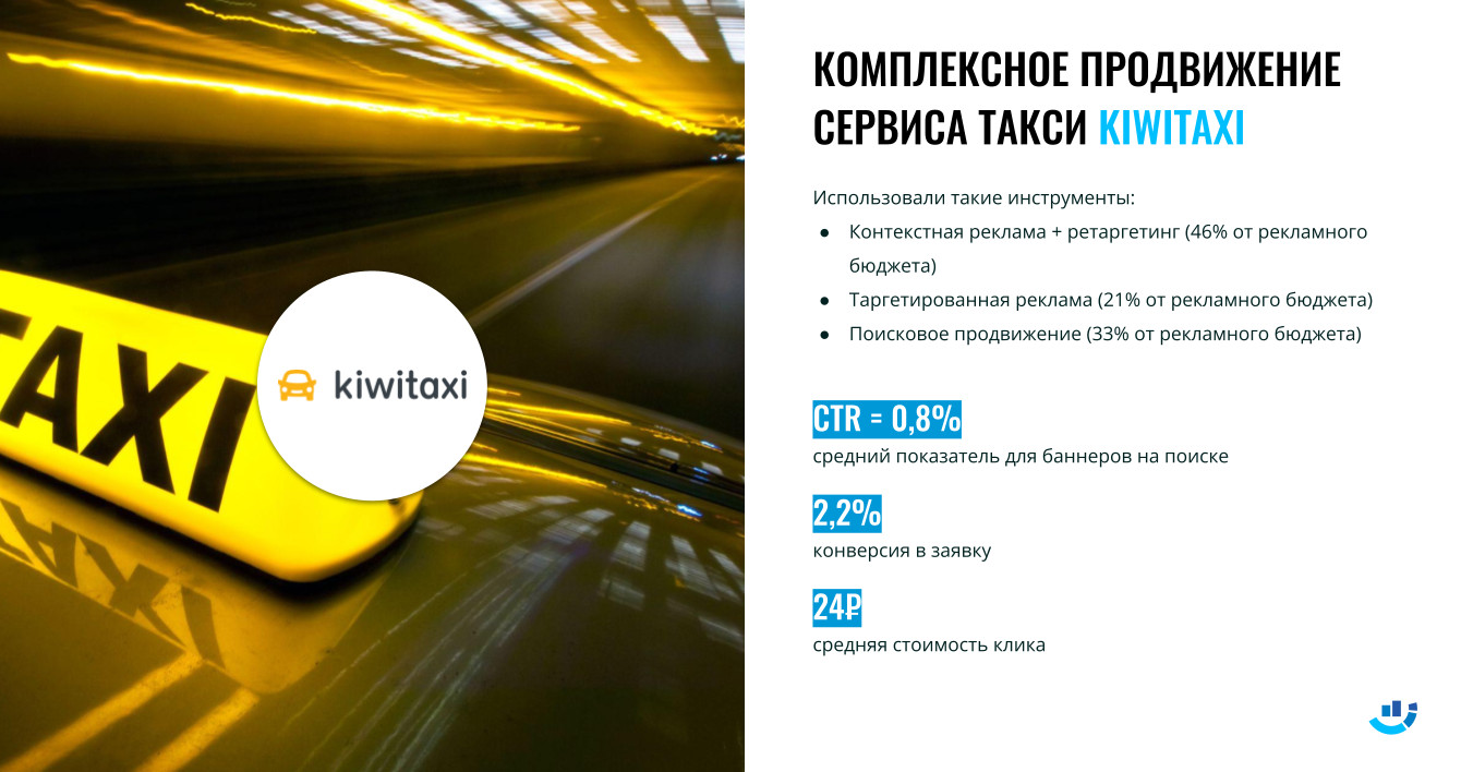 В маркетинговой кампании для Kiwitaxi мы использовали следующие инструменты: