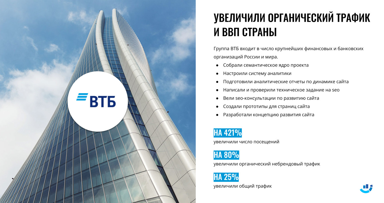 [Кейс] Продвижение сайта ВТБ. Подняли трафик с 32% до 49.5%