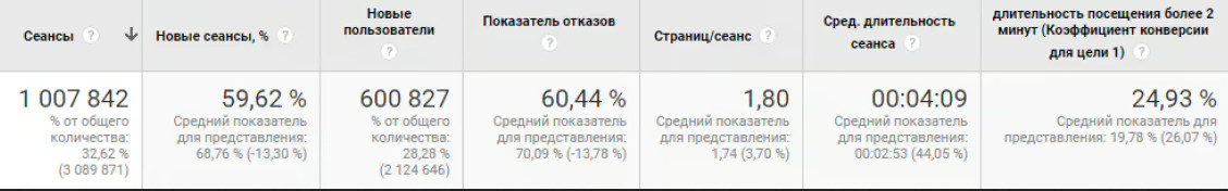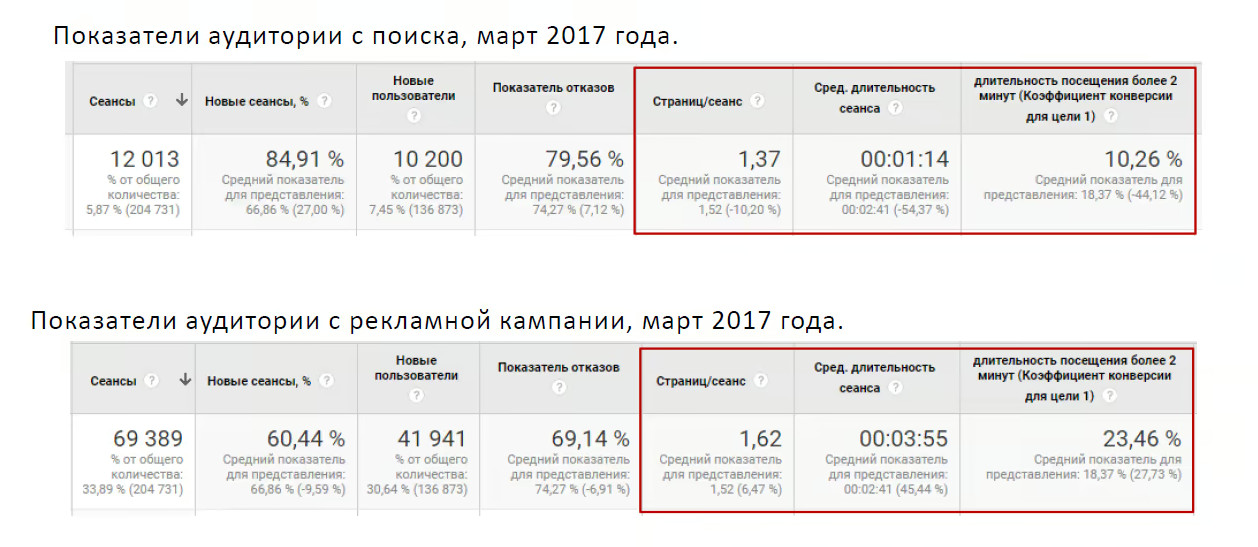 - Время присутствия целевой аудитории на сайте должно быть от 3 минут.
