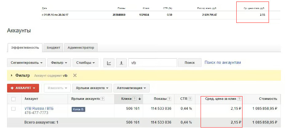 стоимость меньше 3 рублей — задача близкая к невозможной. Почему? Рекламная кампания всегда конкурирует с информационными порталами, потому что они скупают трафик. При этом важно учесть, что ВТБ, разумеется, нужен только тот переход,