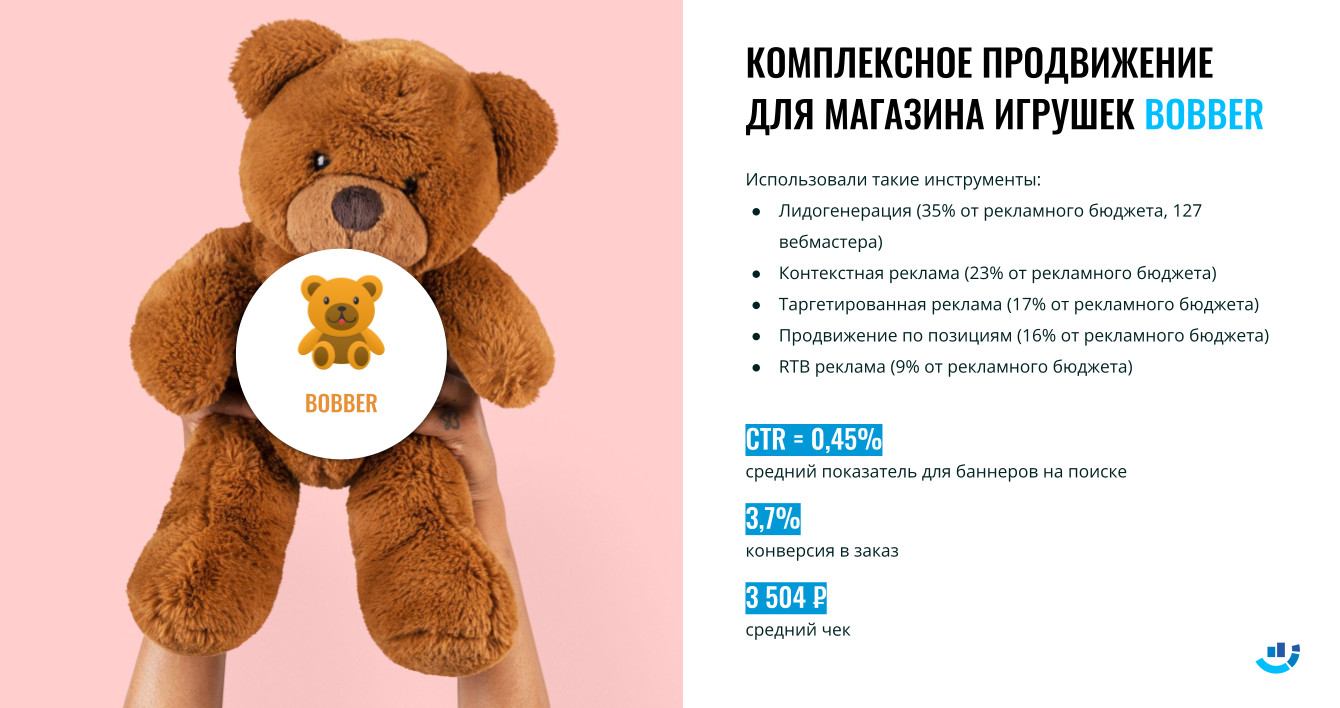 Bobber заботится об экономии времени своих клиентов — сайт оснащён удобной навигацией, которая помогает быстро подобрать игрушку. Однако при всем их удобстве, узнаваемость сайта практически отсутствовала. Их целью было увеличить продажи за месяц, подключив маркетинговое продвижение интернет-магазина.
