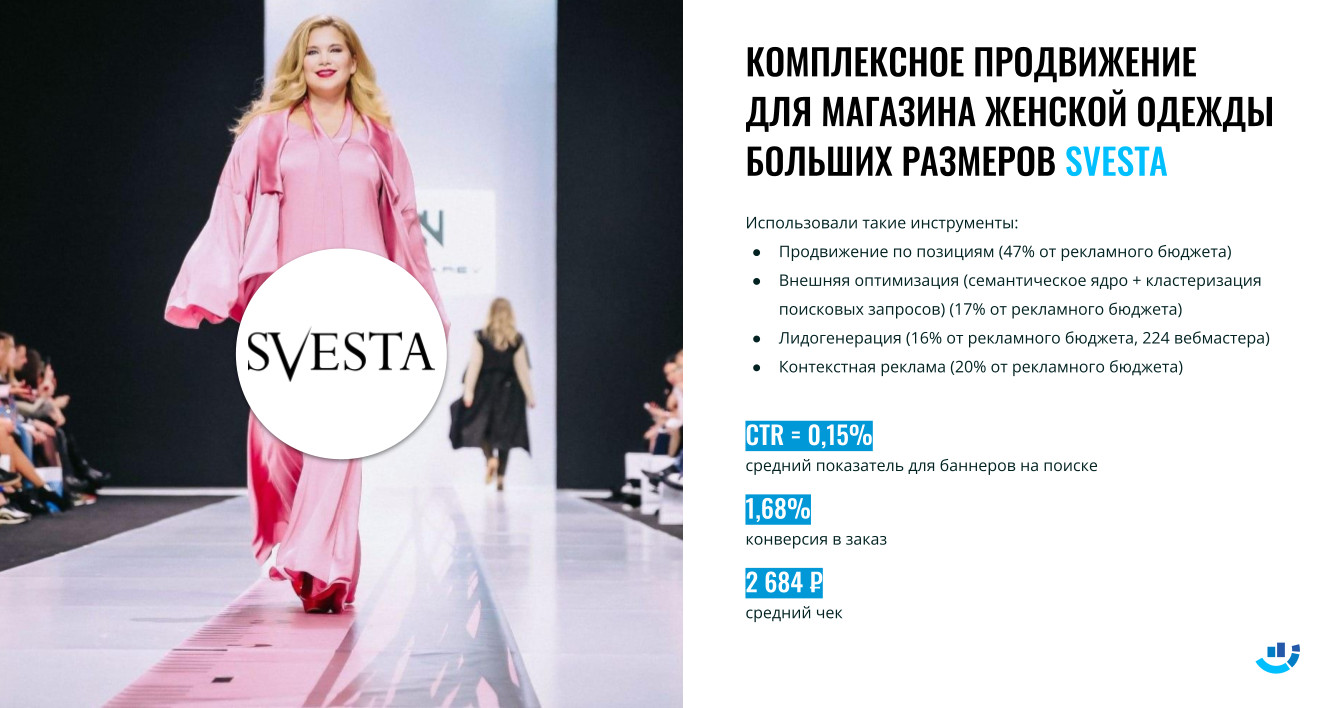[Кейс] Одежда. Продвижение магазина одежды плюс сайз. Придали новые формы конверсии, «округлив» её до 1,68%