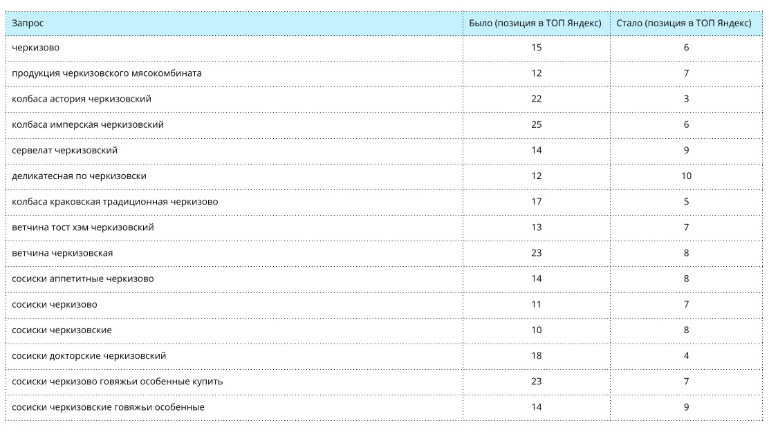 [Кейс] Колбасные изделия. Продвижение легендарного бренда «Черкизово». На 228% увеличили количество запросов в целевом ТОП-10