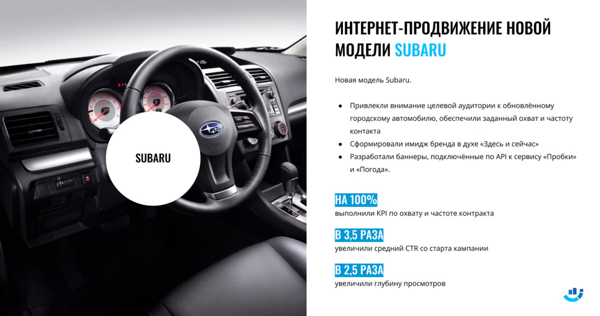 [Кейс] Автомобильный бренд. Интернет-продвижение новой модели Subaru. В 3,5 раза увеличили средний CTR