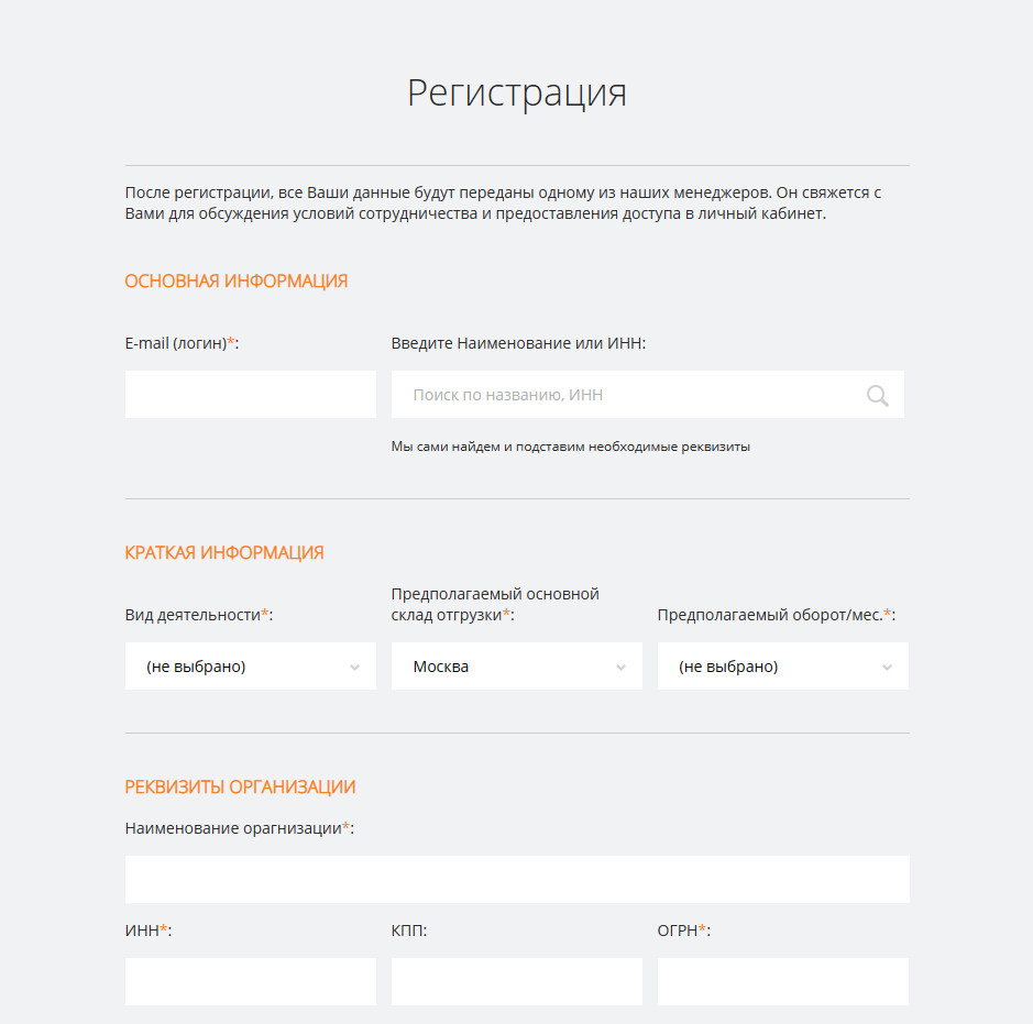 Мы интегрировались с системой «1С» клиента и центром данных поставщиков, создали 44 дизайн-макета для всех страниц сайта, включая продуманный личный кабинет с историей заказов, контактами и счетами.