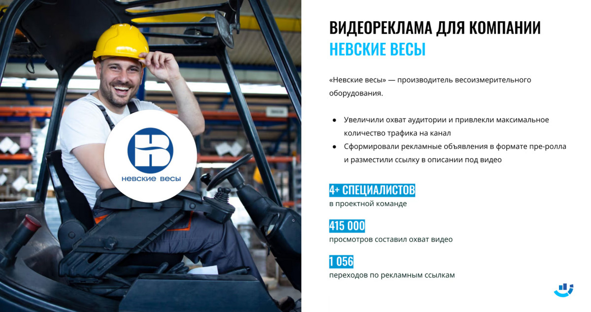 Основываясь на анализе их интересов и поведения в сети, были созданы таргетинговые группы для максимально точного попадания в целевую аудиторию. Видеоролики, разработанные для кампании, не только рассказывали о преимуществах оборудования «Невские весы», но и показывали его применение на практике в разных отраслях промышленности.