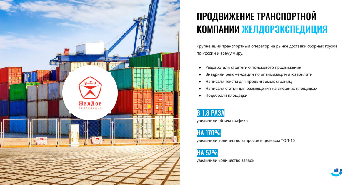 [Кейс] Грузоперевозки. Увеличили показатели органического трафика и улучшили видимость сайта для крупной компании «ЖелДорЭкспедиция». Комплексное продвижение