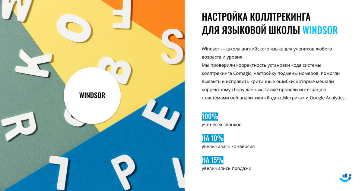 [Кейс] Образование, английский язык. На 15% увеличили продажи для школы английского языка Windsor. Настройка коллтрекинга