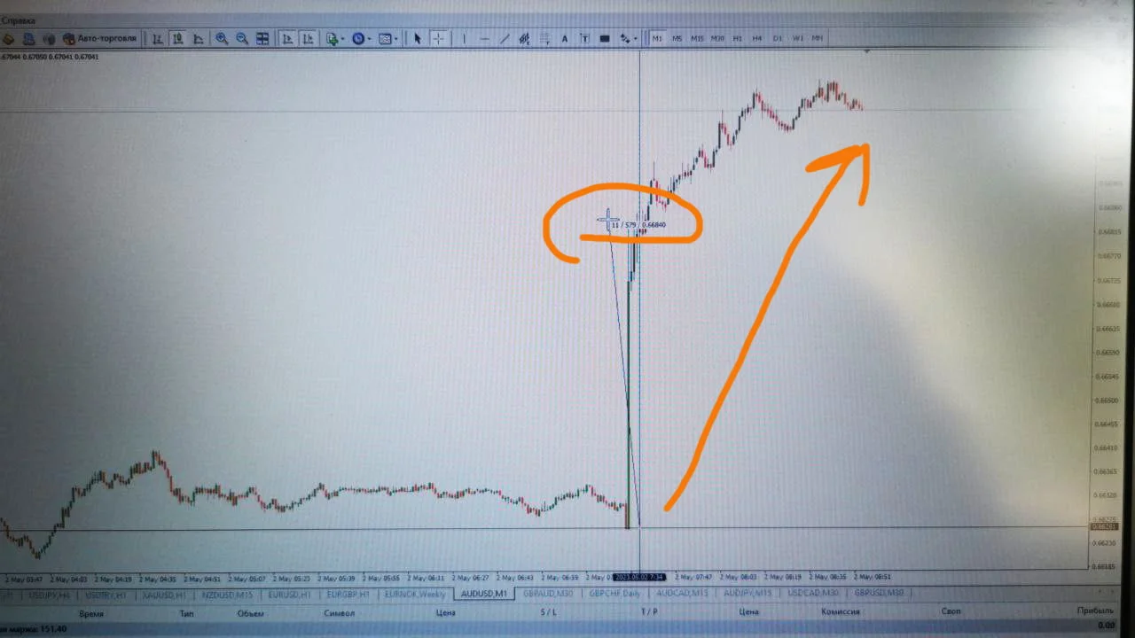 Однако я не ожидал что её повысят. И вот это произошло. Как на этом можно заработать если новость уже вышла и котировки австралийского доллара по отношению к американском доллару улетели вверх на 600 пунктов (!!!) за одну минуту!??
