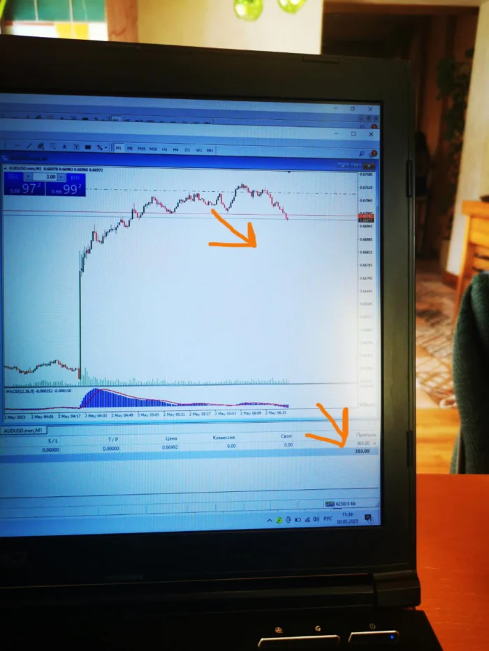 Если не углубляться в сложные термины, то заработать на этом можно двумя способами: либо купить перед ростом цены, либо продать перед снижением. Рост мы уже пропустили, поэтому можно использовать снижение или так называемую коррекцию. Очень часто после сильного роста следует обратное движение на котором можно заработать, что я и сделал. Как видим, после того как я продал AUDUSD, цена пошла вниз и за несколько минут получилось заработать примерно 300 долларов. Если бы я открыл позицию ещё большим объёмом, то можно было бы заработать и больше, но я соблюдаю рискменеджмент. И вам желаю. Соблюдать риски и хорошо зарабатывать! Удачи! Кстати оповещаю заранее о таких новостях в своём телеграм канале.