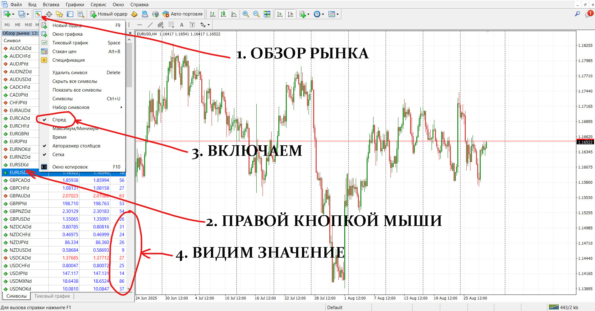 - Время суток: Время суток также влияет на размер спреда. Например, в ночное время, когда торговля менее активна, значения могут быть шире.