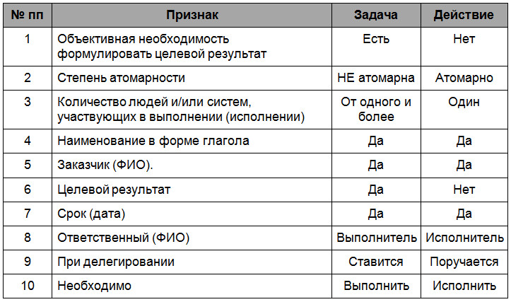 Есть ещё одна сущность, от которой надо чётко отделить «задачу». Это сущность — «ДЕЙСТВИЕ».