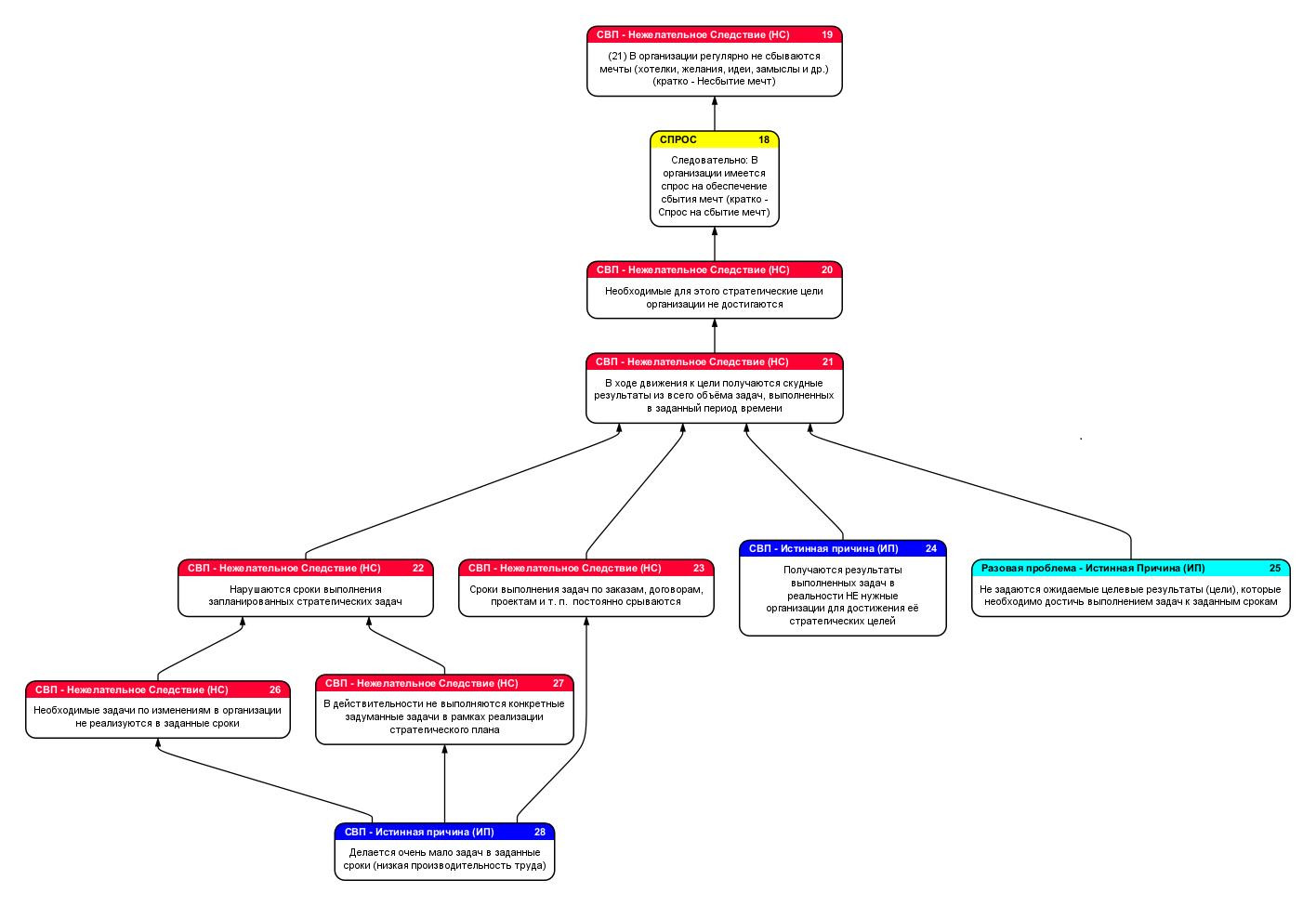мечт» В корне этого ДТР лежит СВП — истинная причина (ИП)[3]: «делается очень мало задач в заданные сроки». Действительно, «сбытие мечт»
