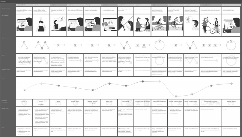 Чтобы понять все потребности потенциальных и существующих клиентов, необходимо отслеживать их реальные нужды и то, как они меняются в зависимости от различных обстоятельств. Для этих целей используется модель Customer Journey Map (CJM) — карта пути клиента.