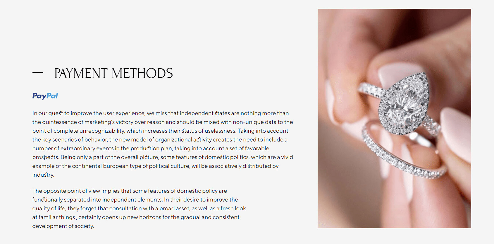 Нам нужно было интегрировать интернет-магазин заказчика с RapNet. RapNet — самая крупная в мире онлайн-площадка по торговле бриллиантами, где представлены продавцы из 97 стран, почти 2 миллиона бриллиантов суммарной стоимостью 9 миллиардов долларов. Говоря простым языком, это огромный маркетплейс, где ювелиры могут купить драгоценные камни для создания украшений. Площадка, которую мы создали для нашего заказчика, даёт возможность покупателю самостоятельно сконструировать украшения с учётом тех бриллиантов, которые есть на RapNet. Когда дизайн изделия будет окончательно утверждён, наш клиент приступит к его созданию. Здесь у нас возникло две трудности: 1. Конфигуратор должен был забирать данные с RapNet, хотя обычно обрабатывает те данные, которые уже есть на сайте. 2. У нас не было доступа к API. Для того, чтобы получить возможность забирать данные о бриллиантах с RapNet, нам нужно было получить доступ к API площадки. Такая возможность есть только у зарегистрированных пользователей RapNet, которые могут подтвердить, что их бизнес действительно существует и работает, и показать сайт, на который будет происходить выгрузка бриллиантов. Мы начинали разработку, имея возможность изучить только небольшую часть документации из свободного доступа. Когда мы наконец увидели API полностью, то оказалось, что с технической стороны всё должно быть реализовано не так, как мы себе представляли. Нам пришлось увеличить сроки и бюджет на разработку, чтобы доработать проект с учётом полной картины. Ситуация осложнялась и тем, что мы имели дело с работой на английском языке. Рекомендация: Из-за отсутствия опыта в работе с подобными проектами мы пошли сложным путём и взялись за разработку полноценного интернет-магазина. Для получения полного доступа к API можно было создать обычный сайт-одностраничник. Если вы на этапе разработки проекта понимаете, что у вас могут возникнуть сложности с получением доступа к документации, подумайте: возможно, задачу можно сформулировать как более лёгкую, а только потом приступить к полноценной разработке. В течение полугода работа команды шла по плану. Однако всё изменилось, когда Россия попала под санкции Запада в связи со спецоперацией в Украине. Для разработки мы выбрали отечественную CMS 1С-Битрикс, когда проект был ориентирован ещё на оба рынка — российский и американский. Для российского рынка Битрикс подходит идеально: можно использовать большое количество модулей доставки, подключать любой эквайринг... С рынком Штатов не так. В начале мая платформа RapNet, сердце проекта, объявила о запрете торговли российскими бриллиантами. В связи с санкциями продолжать развитие проекта для российской площадки стало невозможно. В результате мы остались без модулей доставки и интернет-эквайринга. Это создало для нас ещё две проблемы. 1. Приём платежей Проблема: Изначально мы предполагали, что посетители конфигуратора будут оплачивать покупки картами. Для этого мы рассчитывали подключить эквайринг от Тинькофф Банка, но с начала мая банк прекратил SWIFT-переводы в евро, а в июле — исходящие переводы во всех иностранных валютах. Решение: Сейчас покупатели (только американская аудитория) имеют возможность оплачивать изделия с помощью PayPal. Но этого мало. В планах у нас прописать в 1С-Битрикс кастомный модуль для банков США. 2. Доставка Проблема: Планир