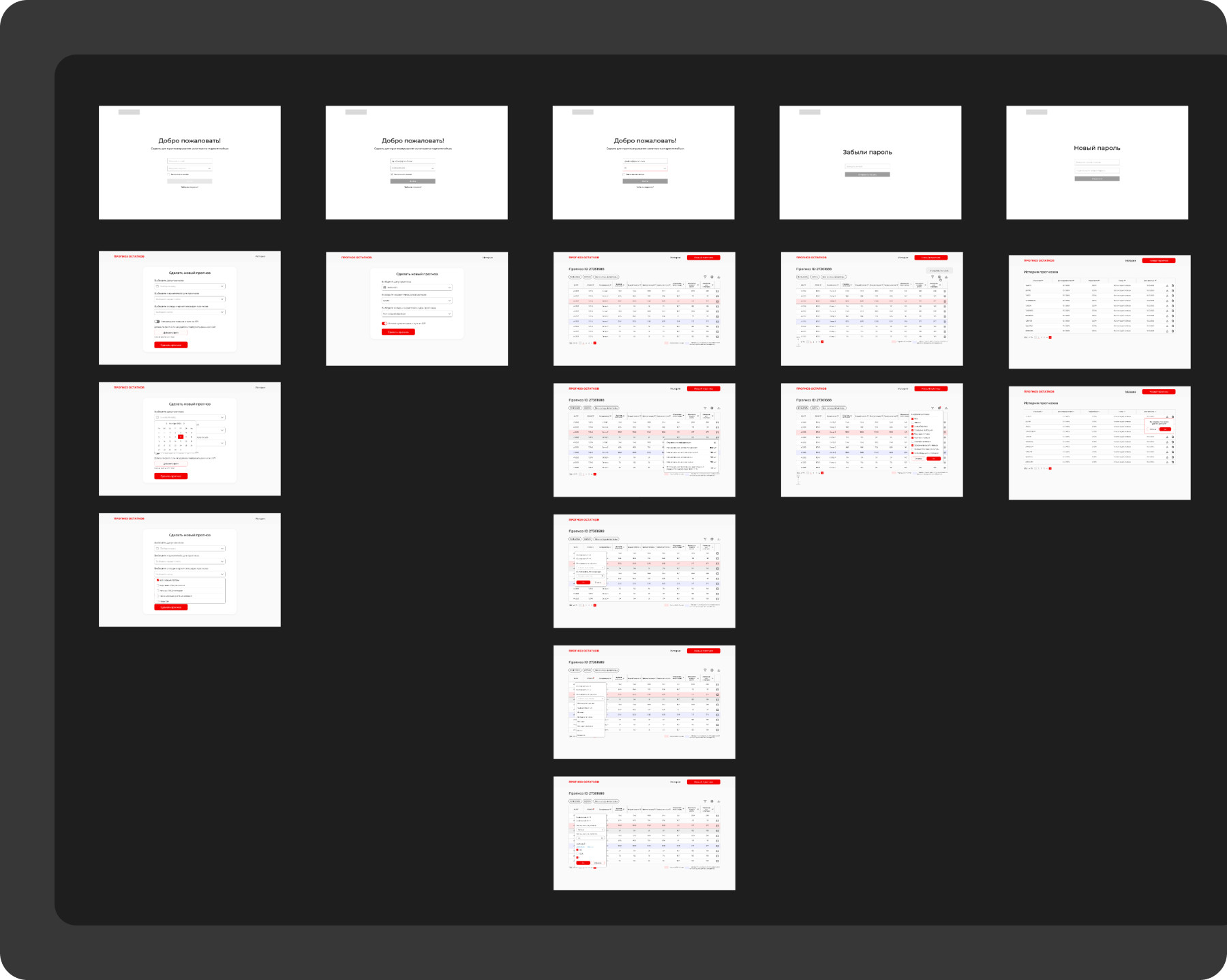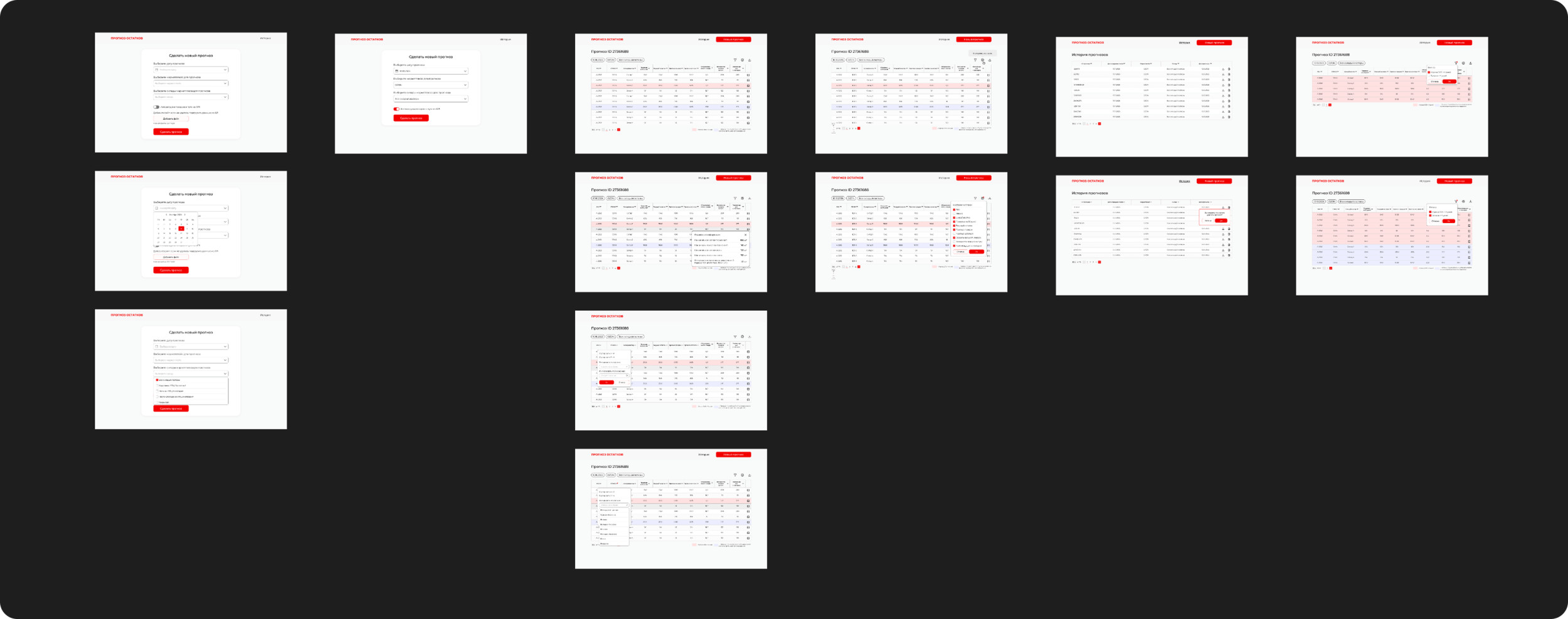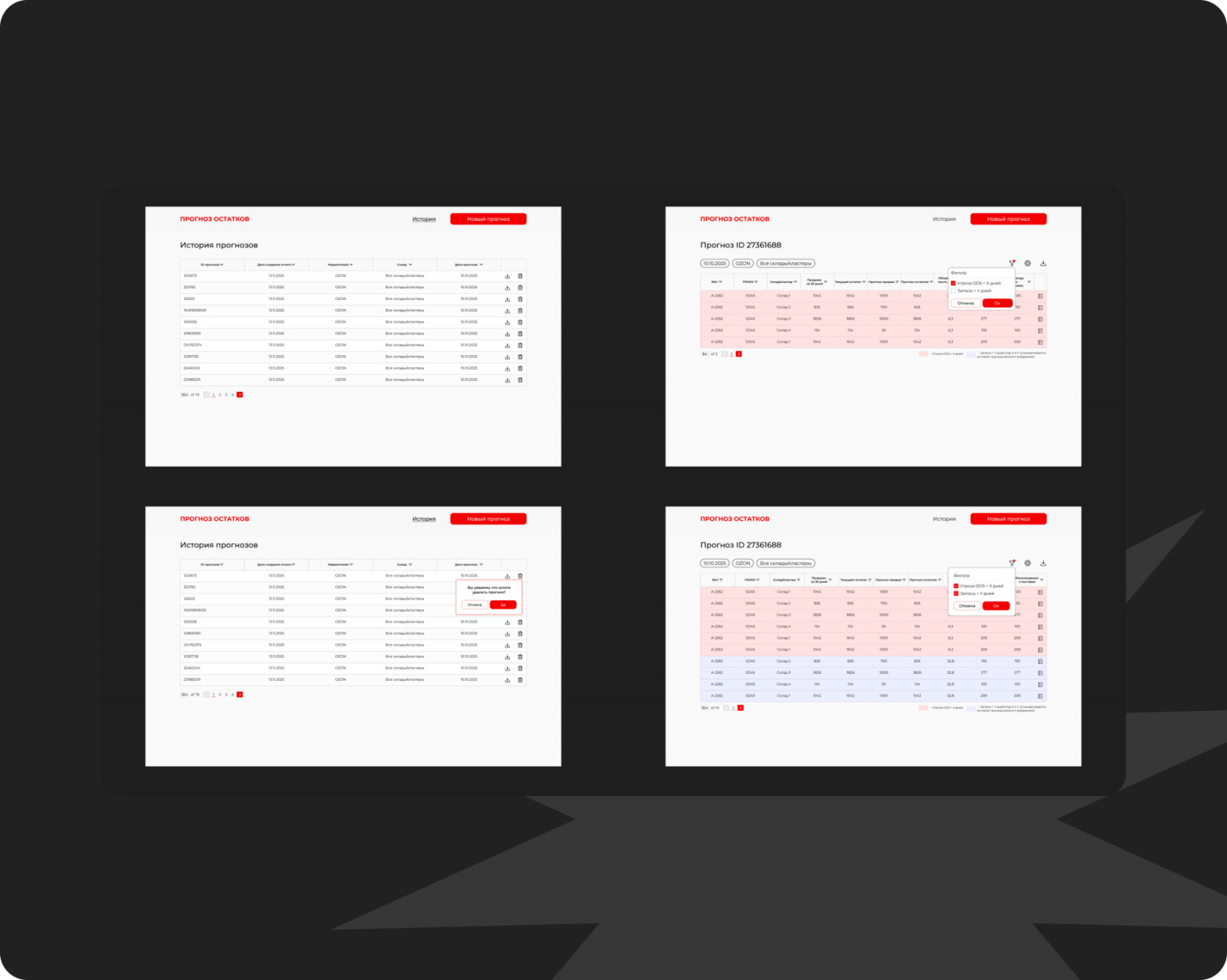 - Реализовать модуль визуализации результатов: выводить таблицу с полями SKU, ITEMID, прогноз поставок на маркетплейсы, прогноз продаж, оборачиваемость и рекомендованная поставка. Обновлять данные в таблице после пересчёта прогноза.
